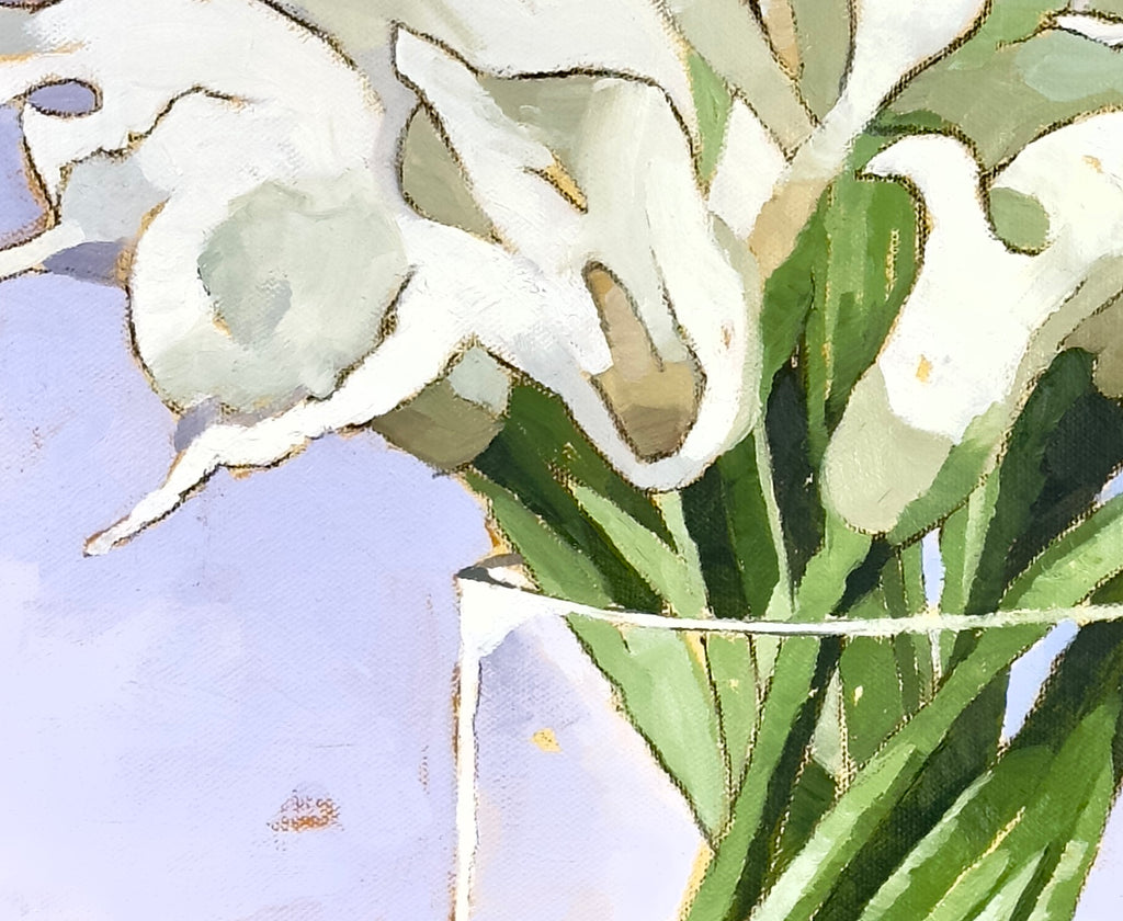 Pamela’s intention as a painter is to speak to the elegance of place and object; to use paint as a means to capture an image and then to reduce the noisy elements in landscape, botanical or interior subjects, by breaking down busy images into an economy of shape and hue. “I love a quiet place. I love to have the brain space to allow my mind and my eyes to soak in the images of my world. In the same manner, the image I want to paint must also speak to my need for simplicity and peace. Our world is a busy, loud and cluttered place. I can paint those elements out, leaving only lovely positive and negative shapes, made with colors that love to be together...” Painter and avid gardener who is fascinated with color, inspired by music, good reads and lessons to learn, Pamela works from her studio with windows that let in the woods of Northeast Georgia, where she lives with her husband Van, dog Tuck and friendly wildlife.