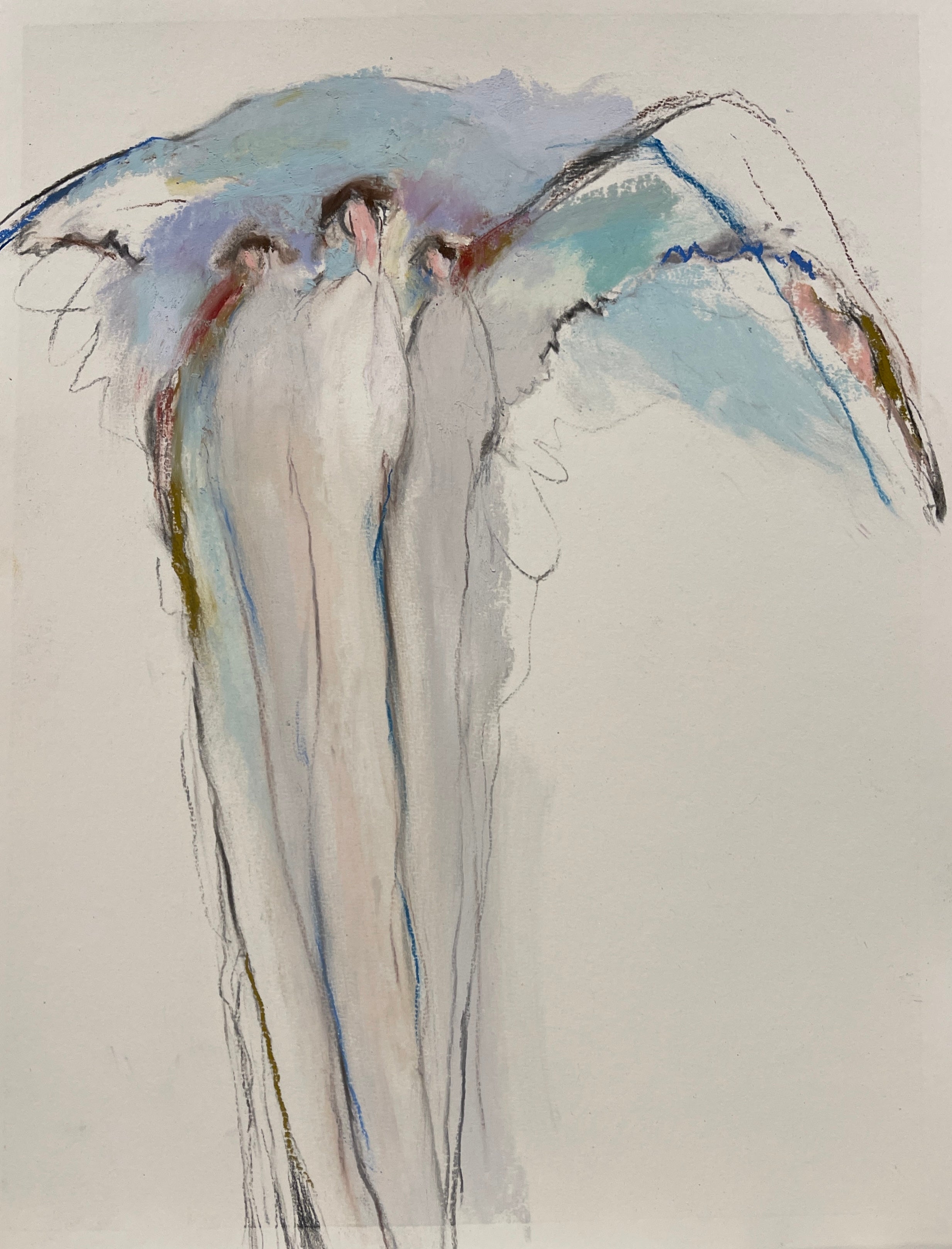 Linda James grew up in Rome, Georgia as the oldest of 5 children. Linda loved to draw from a young age. Her parents always encouraged her artistic endeavors and framed much of her college work to hang in their home. She believes that people are created with the interest, and encouragement takes us onward, which is exactly what her parents did for her. Linda is most known for her ethereal award-winning Angels and has done a number of landscapes over the years - the greens and browns and blues are always layered and lovely. However, for this new body of work, she "wanted another dimension - a twist maybe, so is working in colors unusual for landscapes and lines instead of shapes - all of which is stimulating and thought provoking - and, with the soft pastels they take on an abstraction that feels exciting." Through her work, Linda aims to share God's word in a way that touches others and perhaps awakens a desire to know Him better.