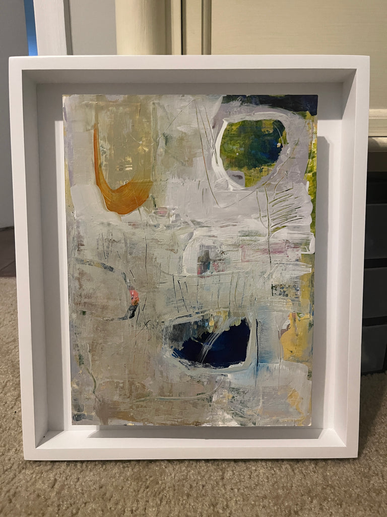 I find ultimate freedom in abstract expressionism and as such, I’m in search of the best way to convey who I am at the moment of creating. It is not to say it is a free-for-all; there is still structure within. I implement the same principles that realist painters employ with the absence of representation: composition, hierarchy, variety, juxtaposition are vital to a successful painting. But I do not limit myself to one medium or the other. I work in oil, acrylics and gouache and depending on what I’m exploring at the time I will choose one or more to express it. I also explore through a combination of paint and collage. It is through all of these various methods and mediums that I am able to share my fullest expression of self and my authenticity. My paintings ultimately are self portraits that are created from both past experiences and also future hopes and dreams. It is my goal to invoke a feeling for the viewer. When it does I have succeede