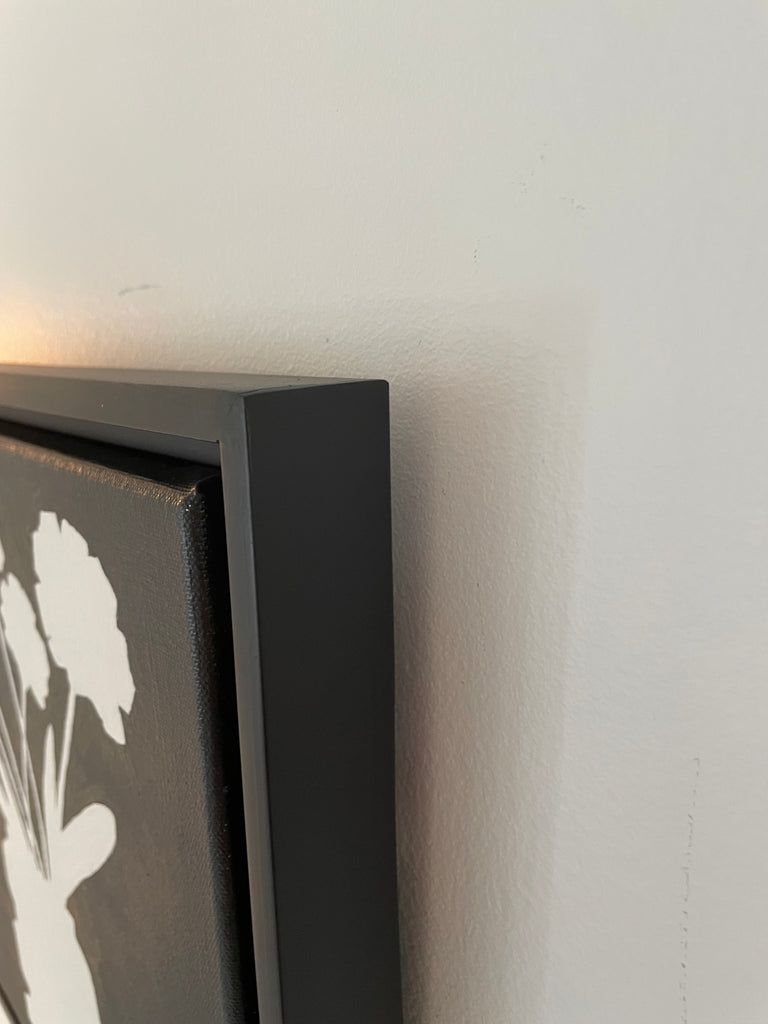 acrylic on canvas, in black floater frame