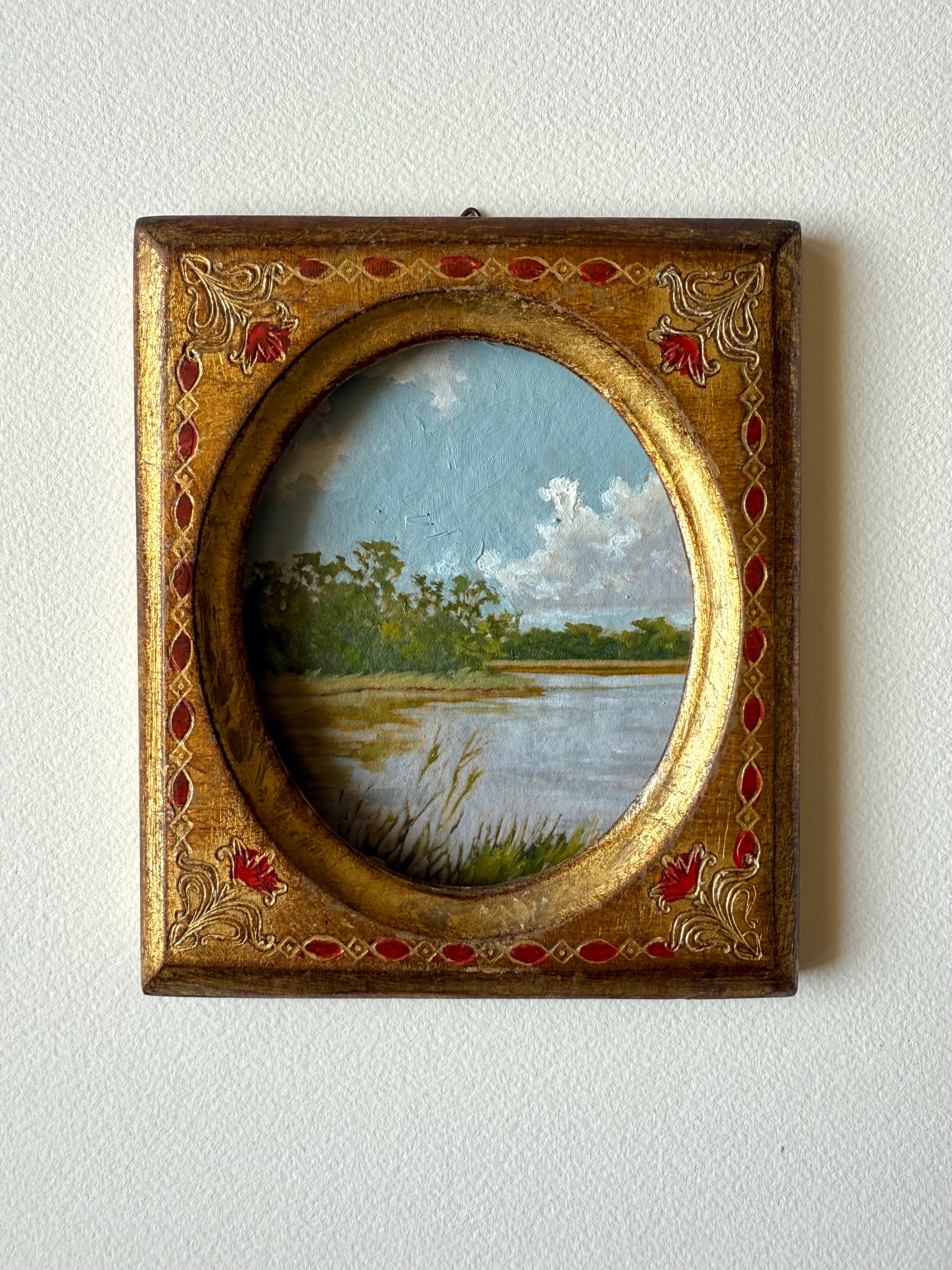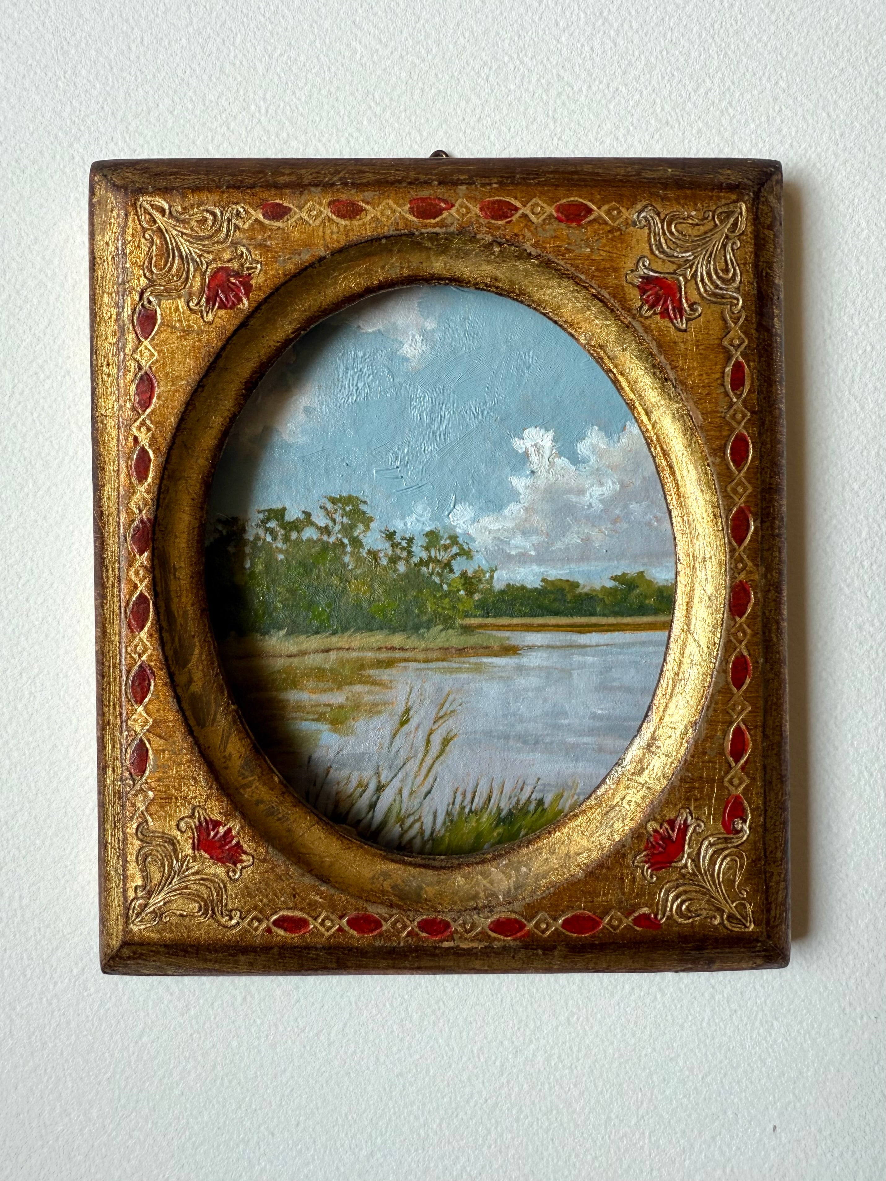 oil on handmade paper in vintage frame