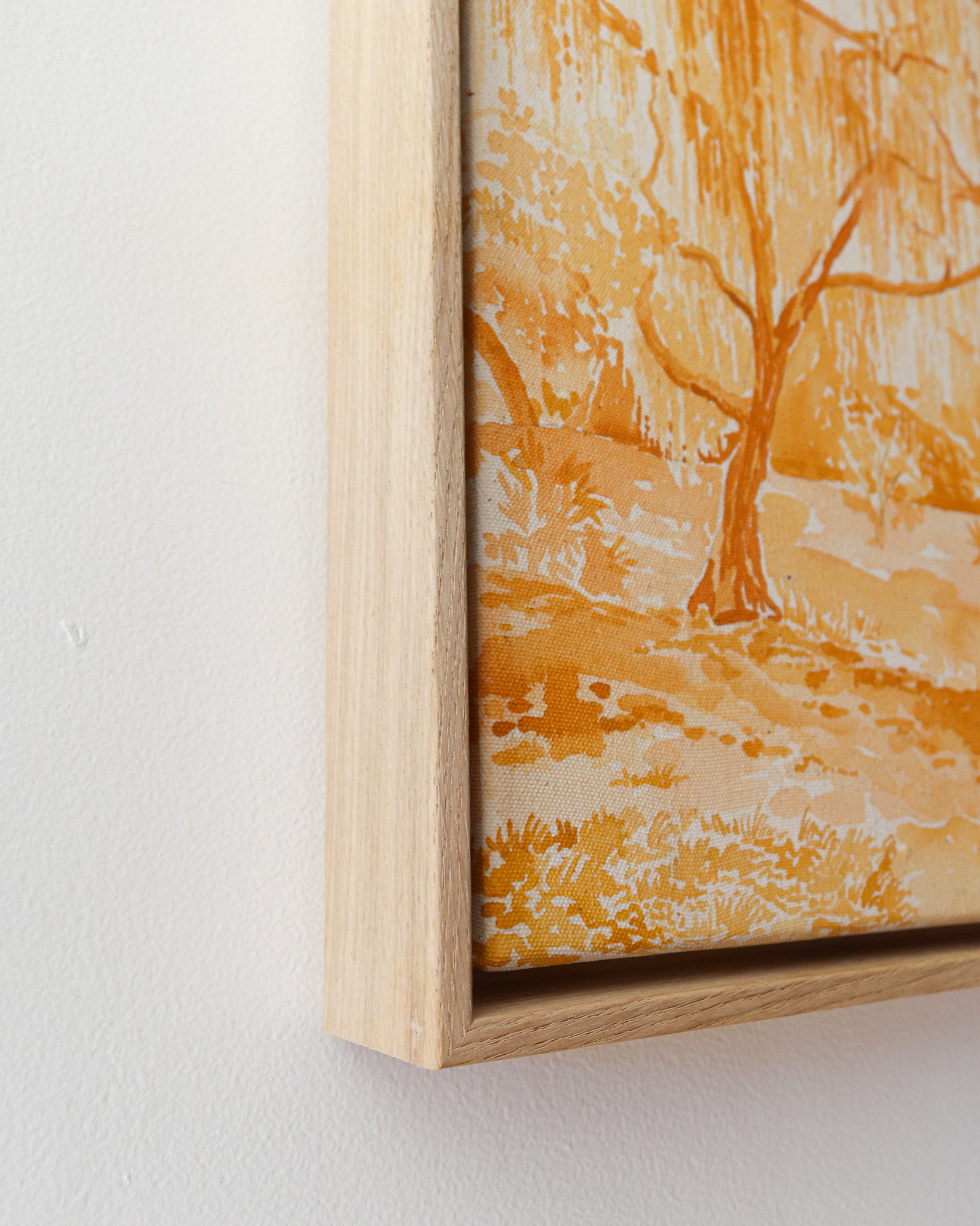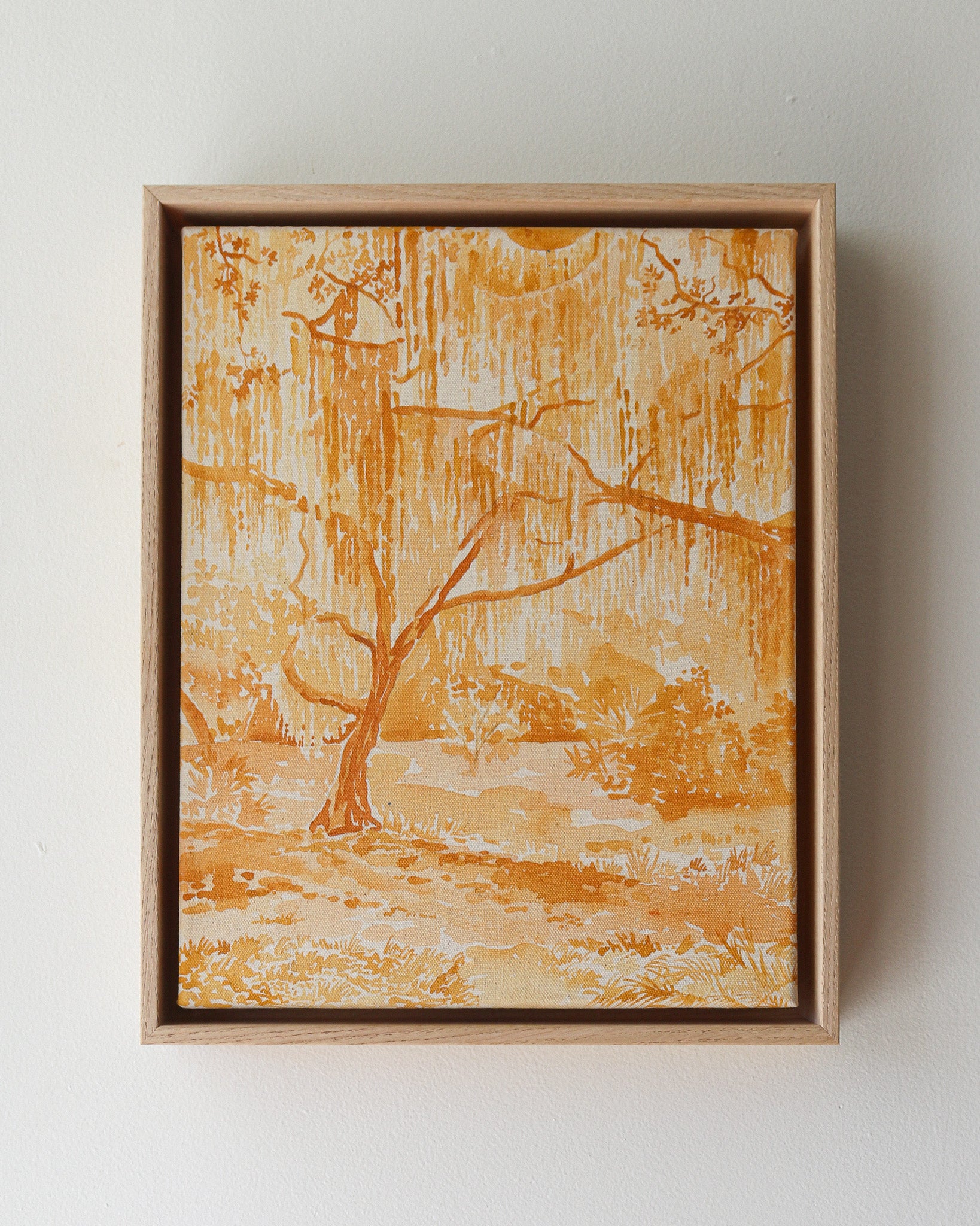 acrylic on gallery wrapped canvas, in maple floater frame