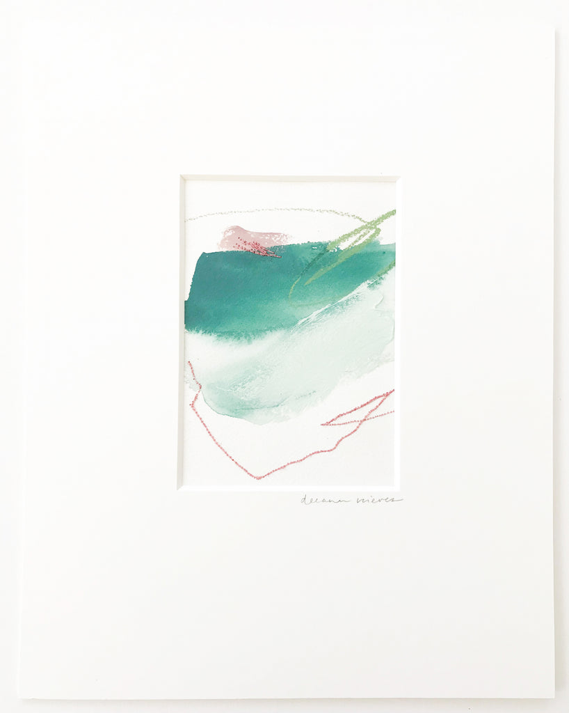 mixed media on watercolor paper in natural white mat