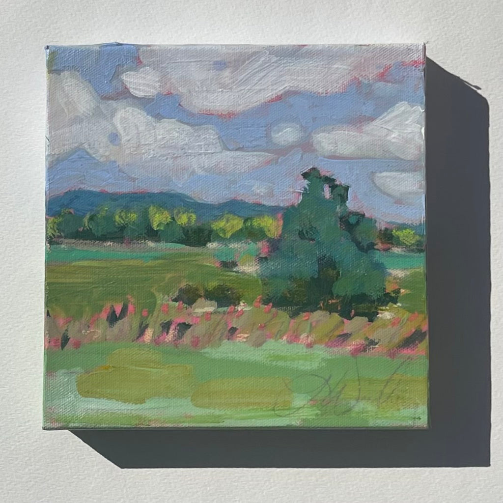 Lindsey’s paintings are an escape and journey - a time to relish the process of creativity: the brush strokes, the layers, the juxtaposition of colors. She works primarily with acrylic paints for their intensity of color and the ability to layer and create textures with various acrylic mediums and gels. A native of Lynchburg, Virginia, Lindsey’s landscapes generally focus on special places that she has known all her life, including fields at the foot of the Blue Ridge Mountains and the pristine beauty of the Cowpasture River. Working from onsite sketches and photographs, she mixes observations with her own personal memories and feelings of how she perceives a place. In addition to being an artist, Lindsey is a full-time art educator, wife, and mother of two young children.
