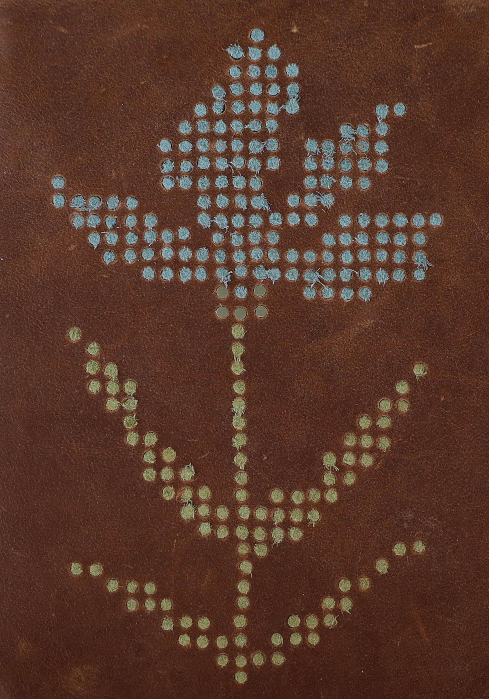 My passion as an artist comes from a life-long desire to create. Growing up with a parent in the military, I was consistently moving around from one place to the next, all the while collecting shapes, places and colors to put in my back pocket and one day use. I was always a painter but started to expand my idea of what could and couldn't be used as art in high school and continued until I finally found my material of choice while in college doing a project made of scrap textiles, including leather and other recycled materials. Years later, in 2018, I started my embarkment as an artist experimenting with different mediums and textiles that slowly evolved into my primary use of leather today. Currently, I live in Memphis, Tennessee with my husband, Alan, and our child, Arrison. When I'm not in the studio, we are often found enjoying local parks, taking nature walks led by our little one. Inspired by the landscapes I grew up seeing and my travels, I soak in my surroundings and then illustrate them in my own way through collages. I am always mesmerized with the way the calming colors and soft layered textures of my pieces can speak to others without using words. A little leather on a wooden panel creates a shared experience between you, the viewer, and me, the artist. This connection brings me such joy and compels me to create the way I see the world: full of color and unsuspecting textures.