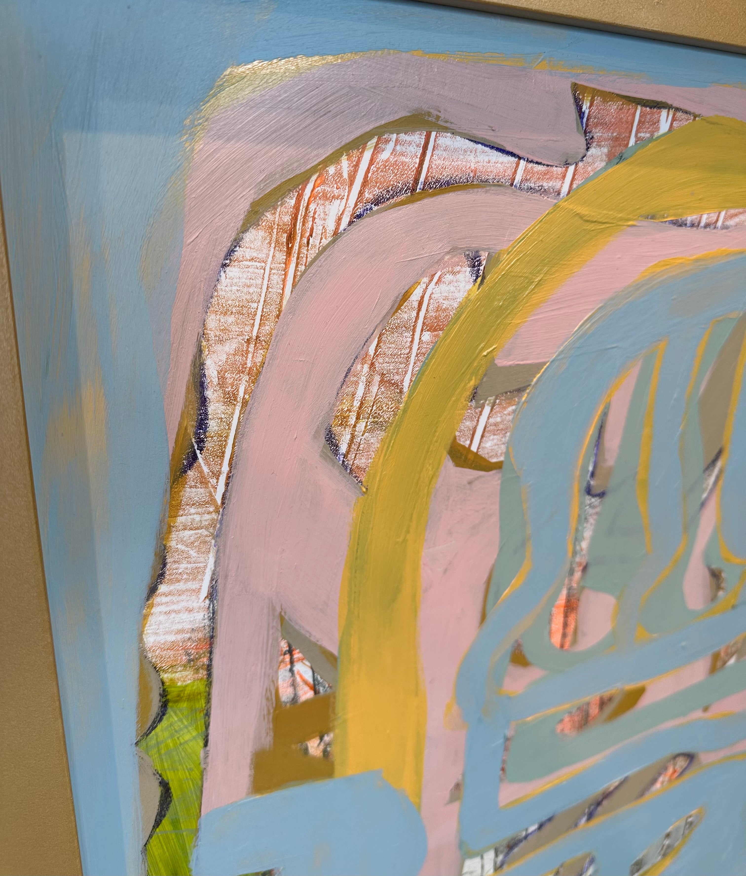 acrylic and pastel on canvas, in gold frame