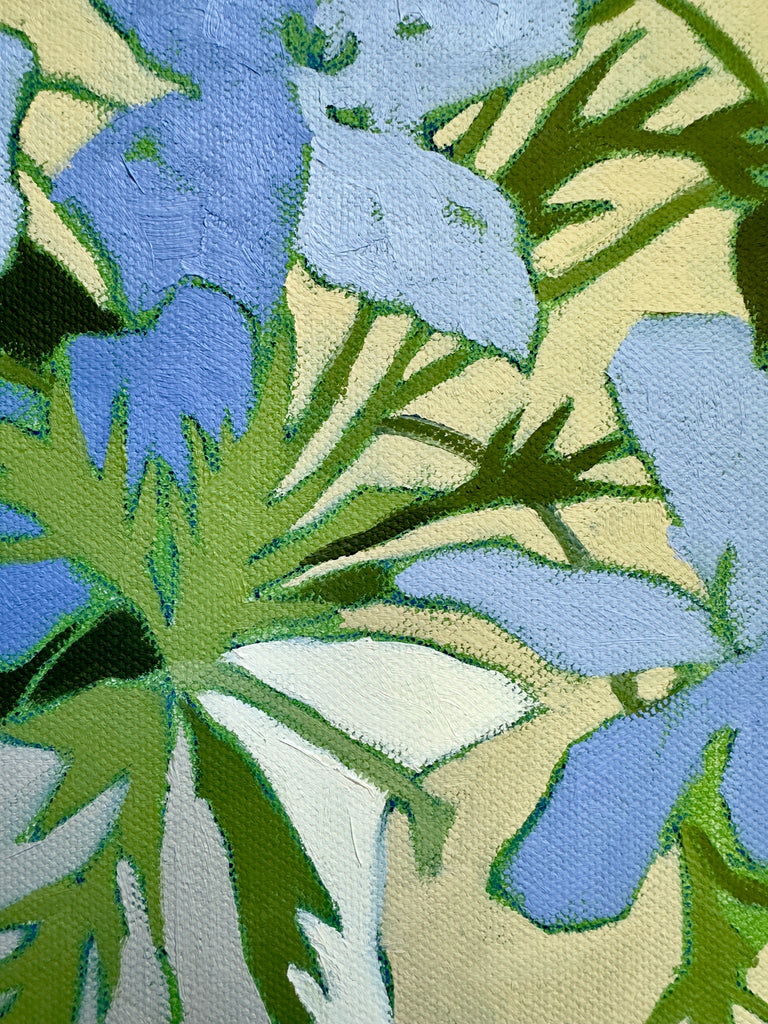 Pamela’s intention as a painter is to speak to the elegance of place and object; to use paint as a means to capture an image and then to reduce the noisy elements in landscape, botanical or interior subjects, by breaking down busy images into an economy of shape and hue. “I love a quiet place. I love to have the brain space to allow my mind and my eyes to soak in the images of my world. In the same manner, the image I want to paint must also speak to my need for simplicity and peace. Our world is a busy, loud and cluttered place. I can paint those elements out, leaving only lovely positive and negative shapes, made with colors that love to be together...” Painter and avid gardener who is fascinated with color, inspired by music, good reads and lessons to learn, Pamela works from her studio with windows that let in the woods of Northeast Georgia, where she lives with her husband Van, dog Tuck and friendly wildlife.