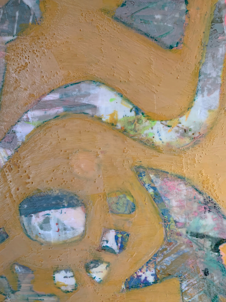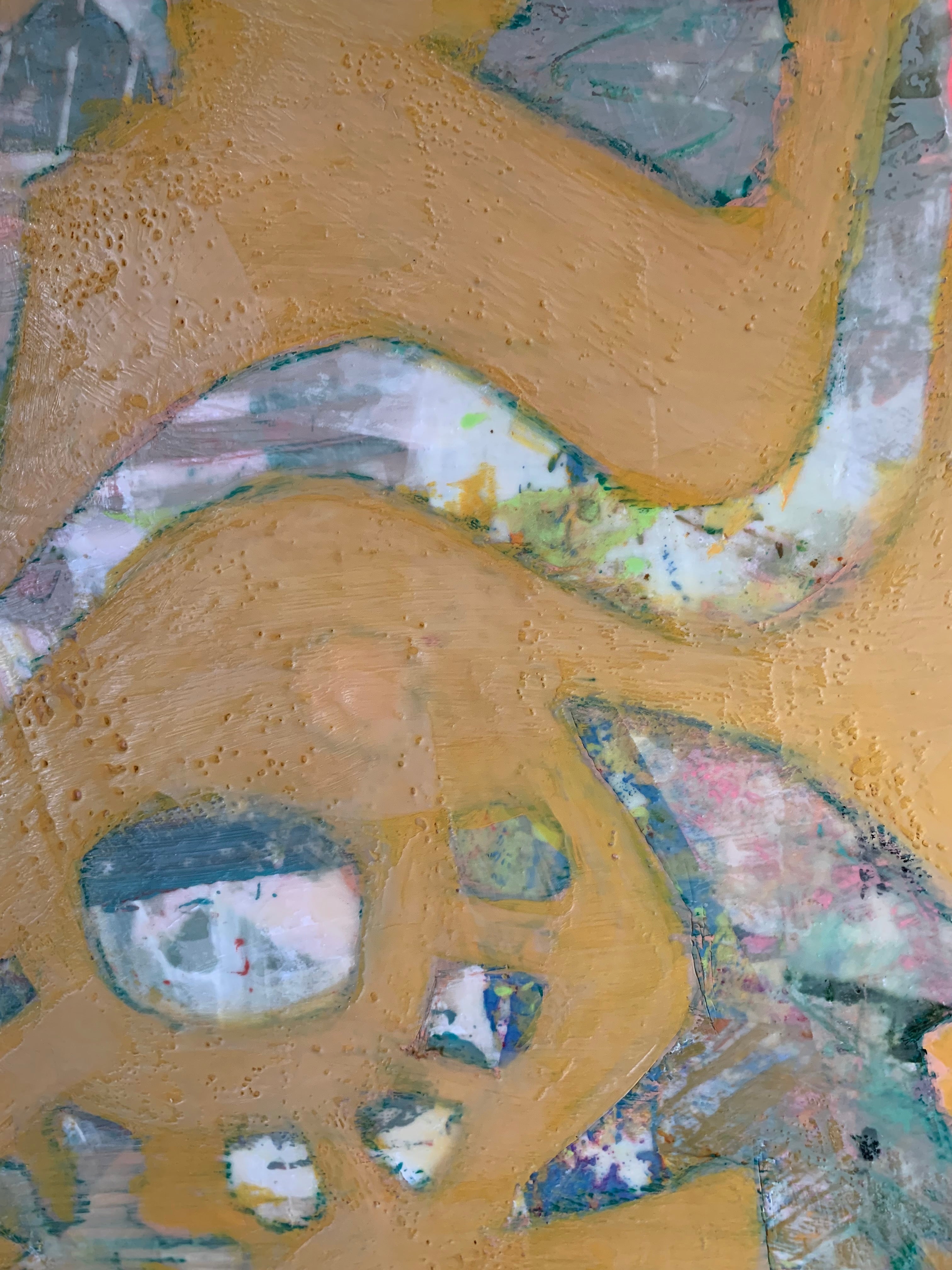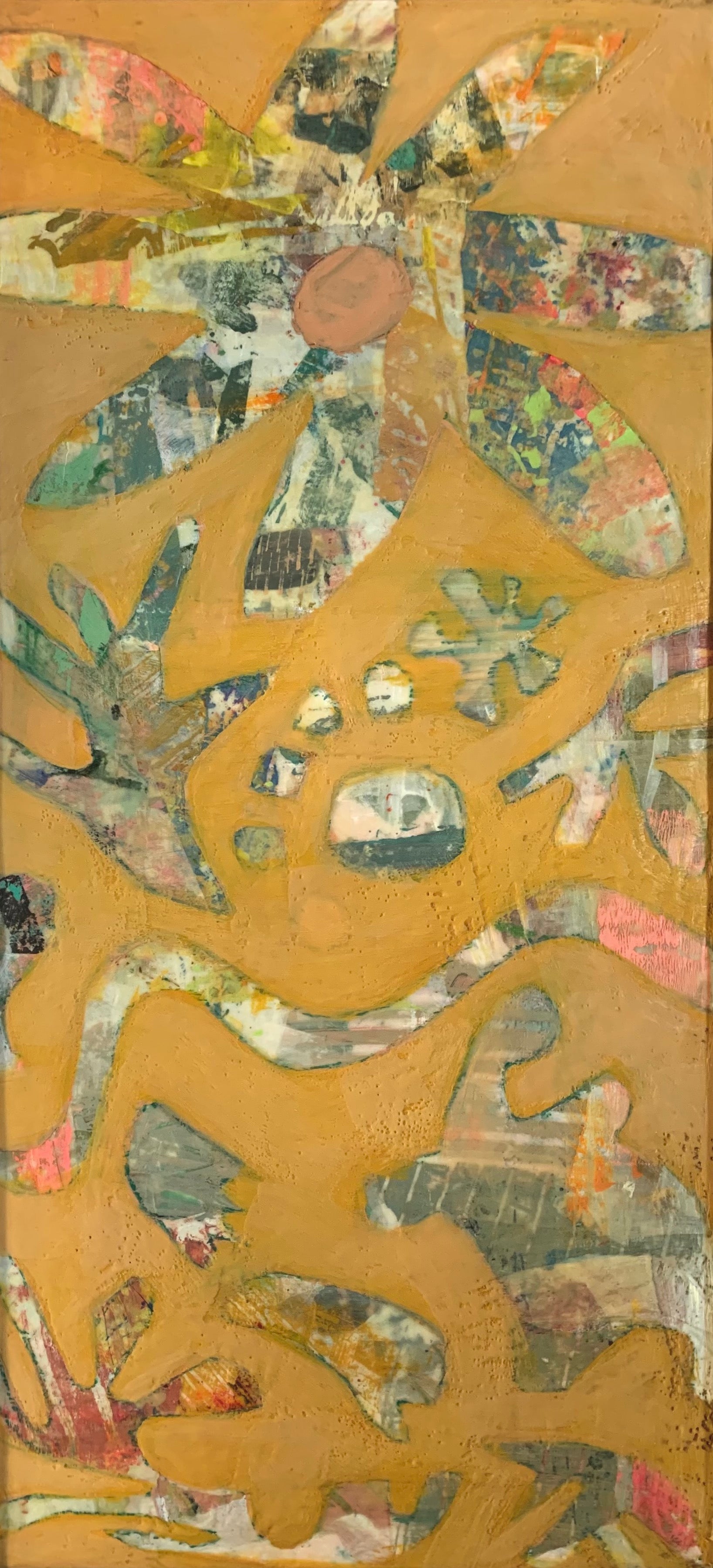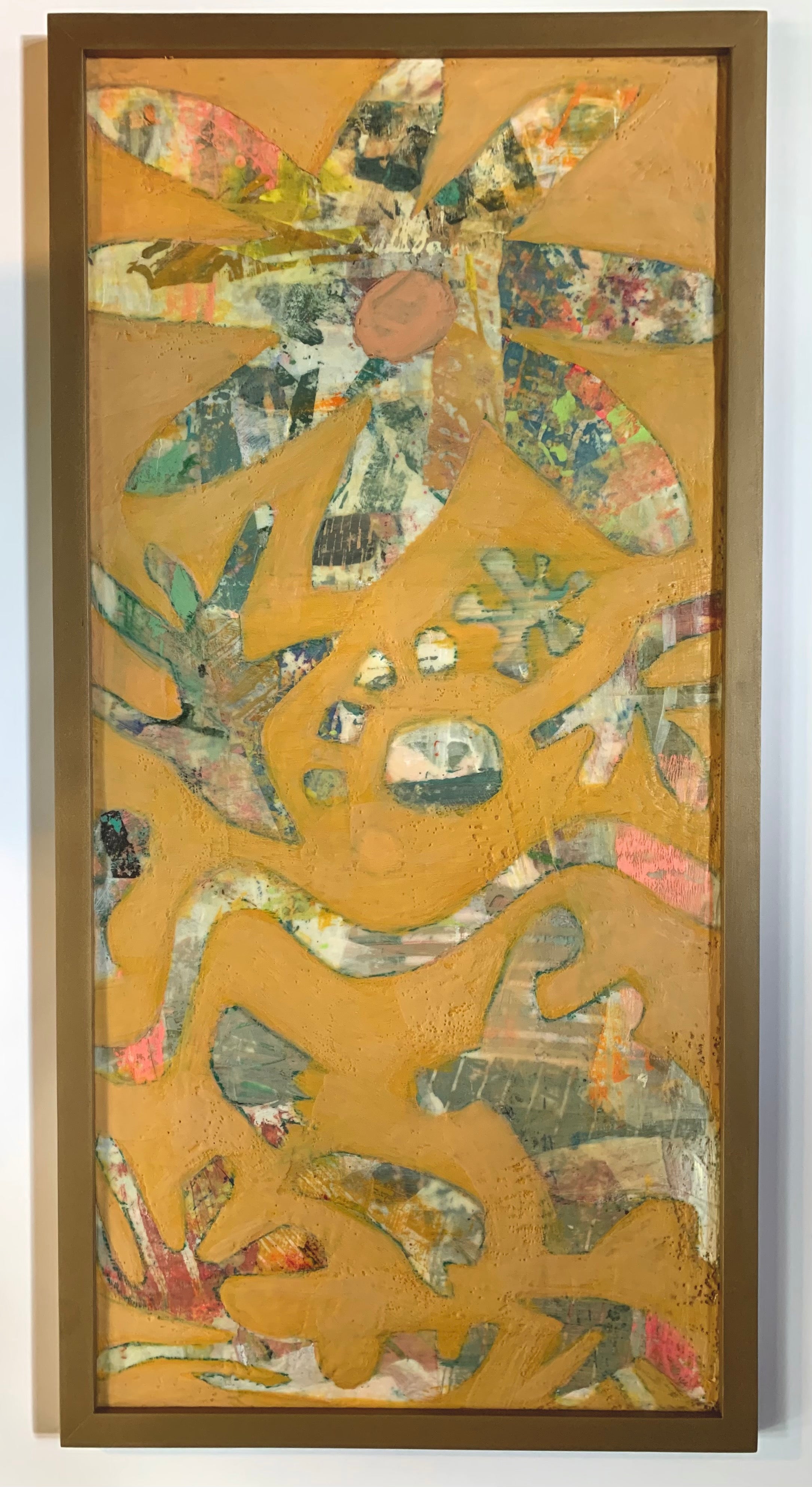 Margaret Meredith is an abstract painter working in acrylic and mixed media. Her work explores emotional atmosphere through layered surfaces, intuitive mark‑making, and a palette that balances moody, muted tones with moments of vivid color. Her recent work builds on botanical themes first explored in 2023, suggesting organic growth and memory rather than literal representation. Alongside this, Meredith has created minimalist, encaustic-medium, and collage‑based works that continue to inform her layered approach. Currently, she is focused on acrylic painting, embracing its fluidity and the freedom to work with water. Pencil marks, printed elements, stencils, and hand‑made tools play an ongoing role in her process, reflecting her love of printmaking and experimental mark‑making. Margaret Meredith lives and works in Columbus, Georgia, with her husband, a woodworker and mushroom farmer, and their two sons.