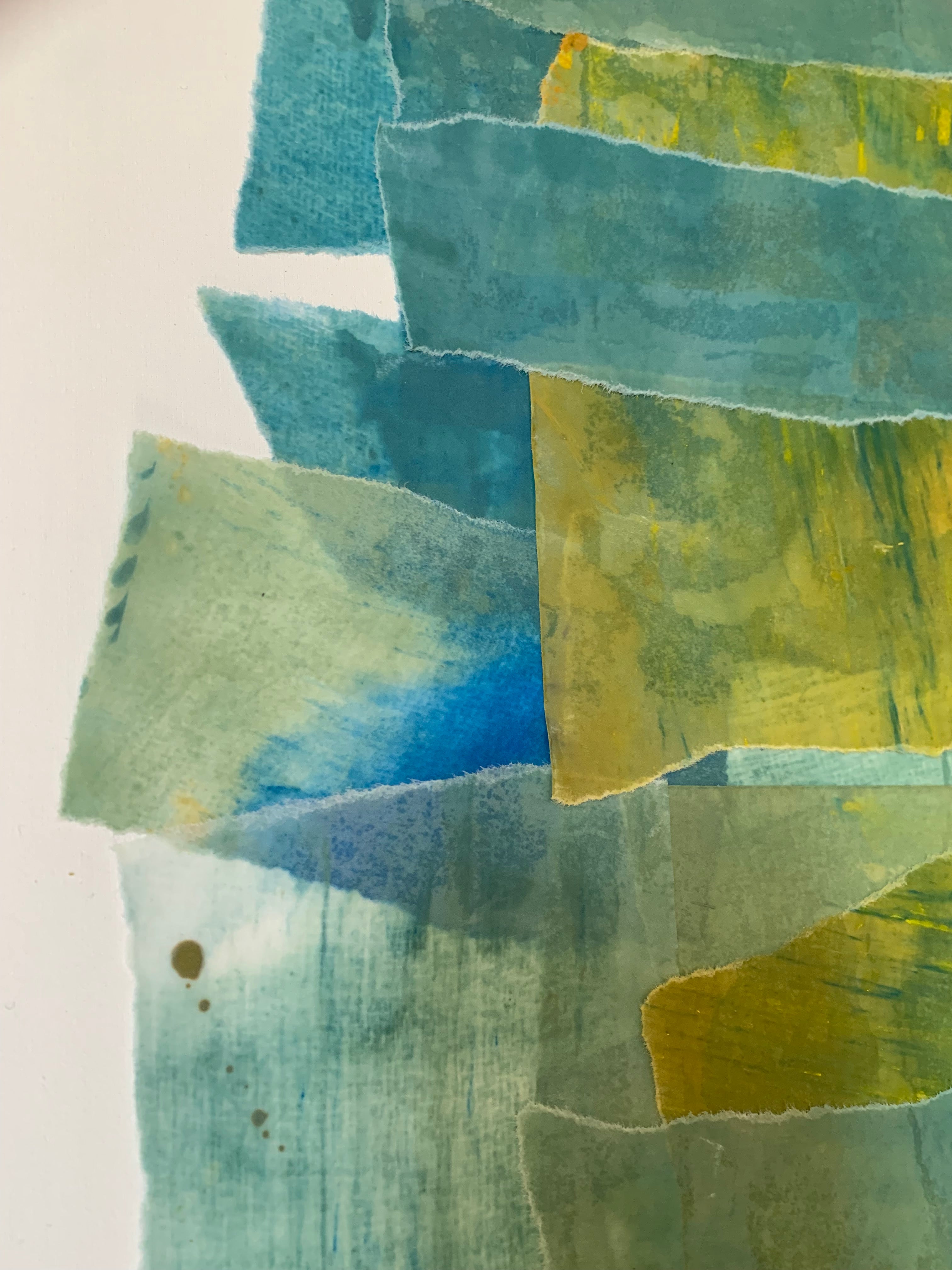 Margaret Meredith is an abstract painter working in acrylic and mixed media. Her work explores emotional atmosphere through layered surfaces, intuitive mark‑making, and a palette that balances moody, muted tones with moments of vivid color. Her recent work builds on botanical themes first explored in 2023, suggesting organic growth and memory rather than literal representation. Alongside this, Meredith has created minimalist, encaustic-medium, and collage‑based works that continue to inform her layered approach. Currently, she is focused on acrylic painting, embracing its fluidity and the freedom to work with water. Pencil marks, printed elements, stencils, and hand‑made tools play an ongoing role in her process, reflecting her love of printmaking and experimental mark‑making. Margaret Meredith lives and works in Columbus, Georgia, with her husband, a woodworker and mushroom farmer, and their two sons.