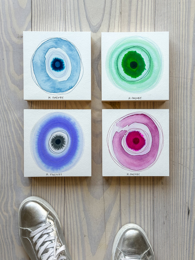 Michelle Owenby’s work is rooted in her southern heritage and shaped by reflective, spiritual outpourings from her inner life. Working in a clean, minimal aesthetic, she often uses water-based mediums on paper, wood, and natural materials. Generous negative space is a hallmark of her work, reflecting her ongoing pursuit of soulful balance and attentive presence. Her work has been seen throughout the Southeast, collected nationwide, and licensed in worldwide markets. Her hope is that her work would encourage and nourish hopeful souls longing for a simple, illuminated life marked by joy, peace, freedom, meaning, and love. Each piece is created with prayerful intention—painted by imperfect hands and offered as an expression of peace, joy, and devotion.