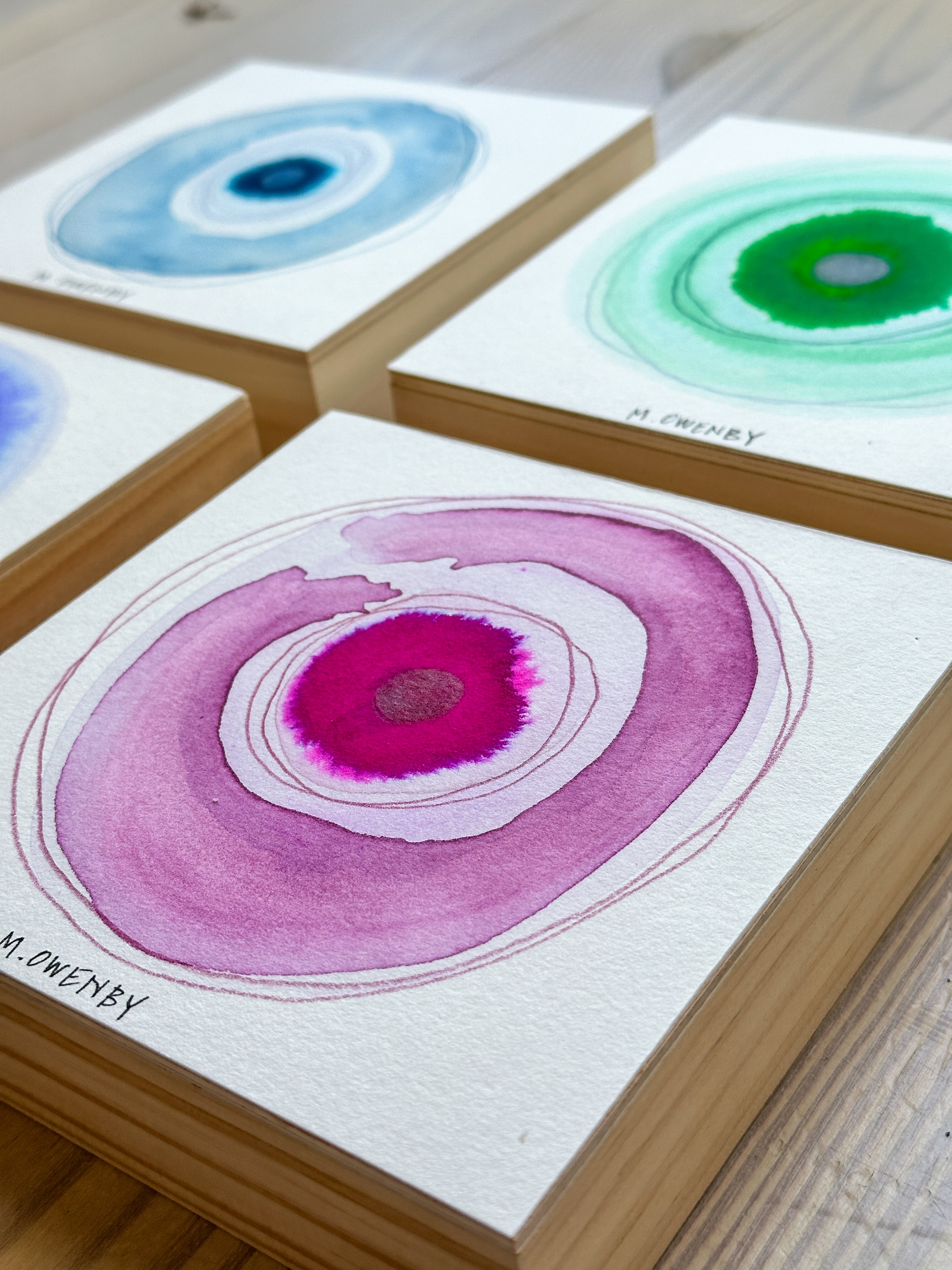 Michelle Owenby’s work is rooted in her southern heritage and shaped by reflective, spiritual outpourings from her inner life. Working in a clean, minimal aesthetic, she often uses water-based mediums on paper, wood, and natural materials. Generous negative space is a hallmark of her work, reflecting her ongoing pursuit of soulful balance and attentive presence. Her work has been seen throughout the Southeast, collected nationwide, and licensed in worldwide markets. Her hope is that her work would encourage and nourish hopeful souls longing for a simple, illuminated life marked by joy, peace, freedom, meaning, and love. Each piece is created with prayerful intention—painted by imperfect hands and offered as an expression of peace, joy, and devotion.