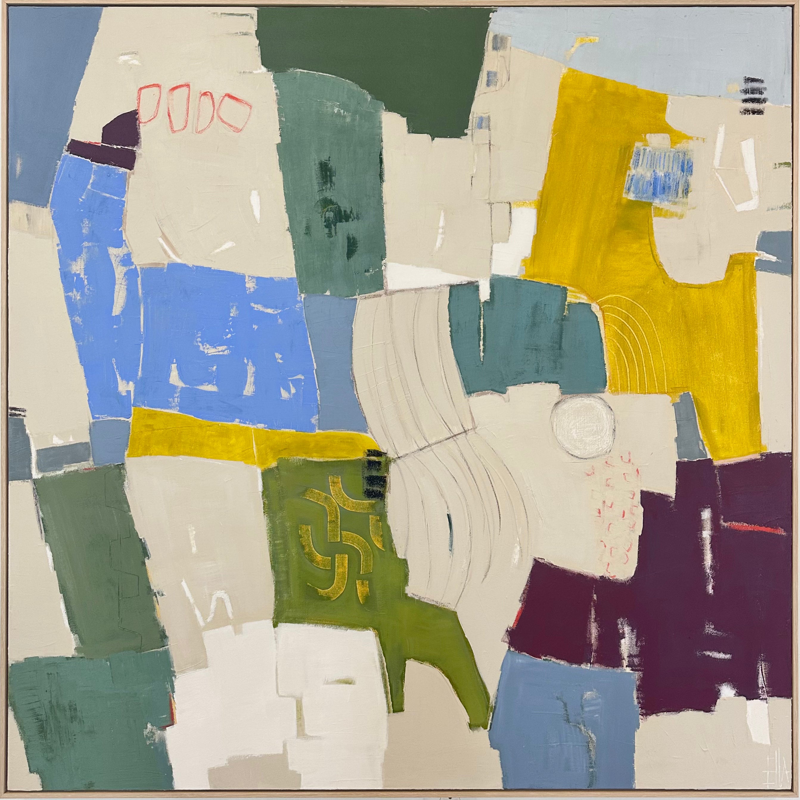 Sarah Ella Cole is a right and left brained self taught artist finding balance on canvas. She is drawn to the fine lines of geometry with the ever present intention to paint them as aloof. She plays with all mediums to create a multifold texture and finish. She finds inspiration from her favorite travel spots, textiles, architecture, and nature. Sarah Ella holds tight to her southern roots and that inspiration will always find its way into each piece.