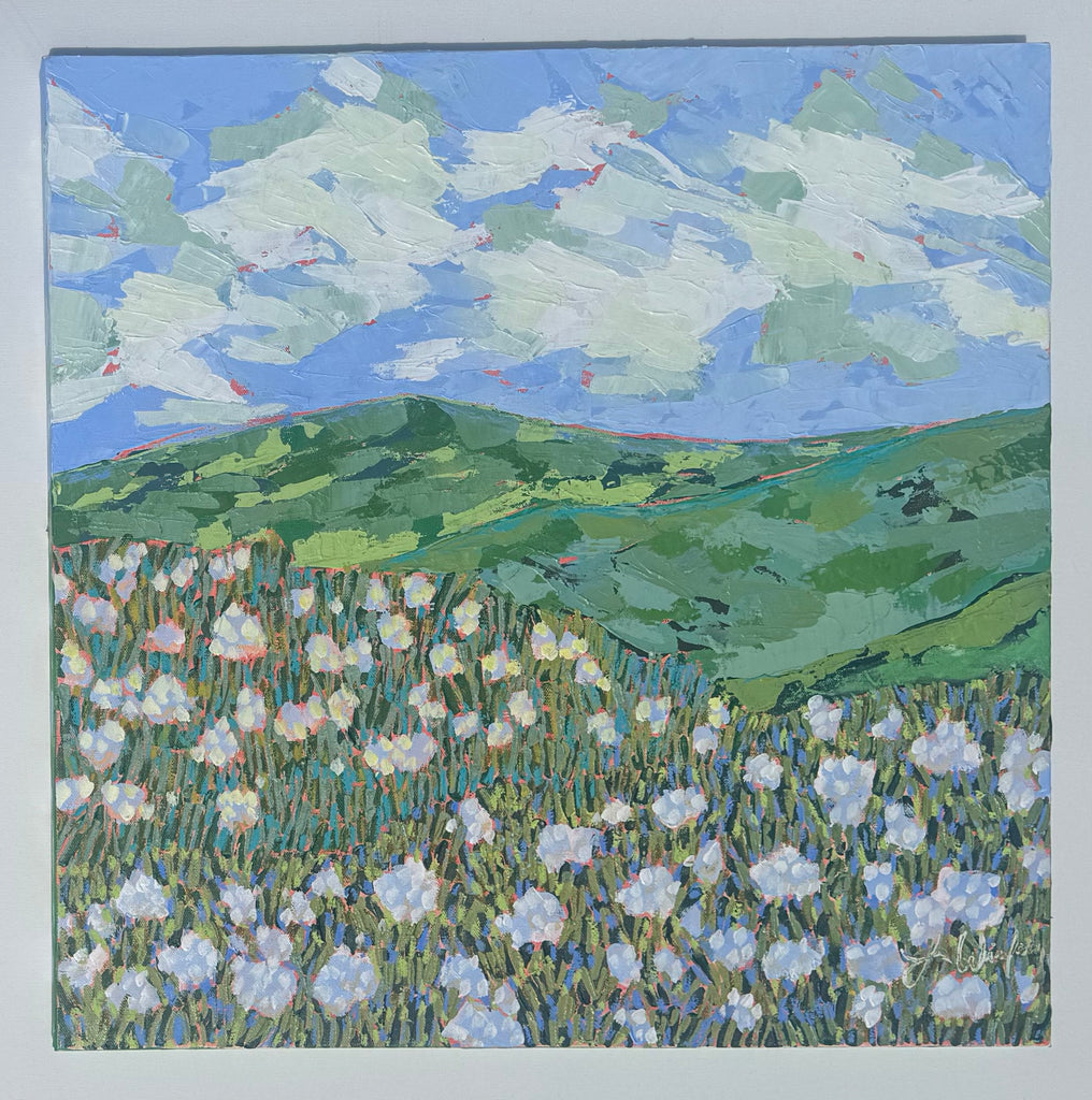 Lindsey’s paintings are an escape and journey - a time to relish the process of creativity: the brush strokes, the layers, the juxtaposition of colors. She works primarily with acrylic paints for their intensity of color and the ability to layer and create textures with various acrylic mediums and gels. A native of Lynchburg, Virginia, Lindsey’s landscapes generally focus on special places that she has known all her life, including fields at the foot of the Blue Ridge Mountains and the pristine beauty of the Cowpasture River. Working from onsite sketches and photographs, she mixes observations with her own personal memories and feelings of how she perceives a place. In addition to being an artist, Lindsey is a full-time art educator, wife, and mother of two young children.