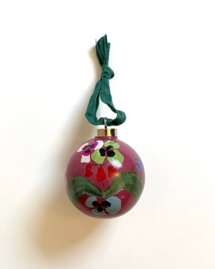 hand painted ceramic ornament with acrylic paint and glossy varnish