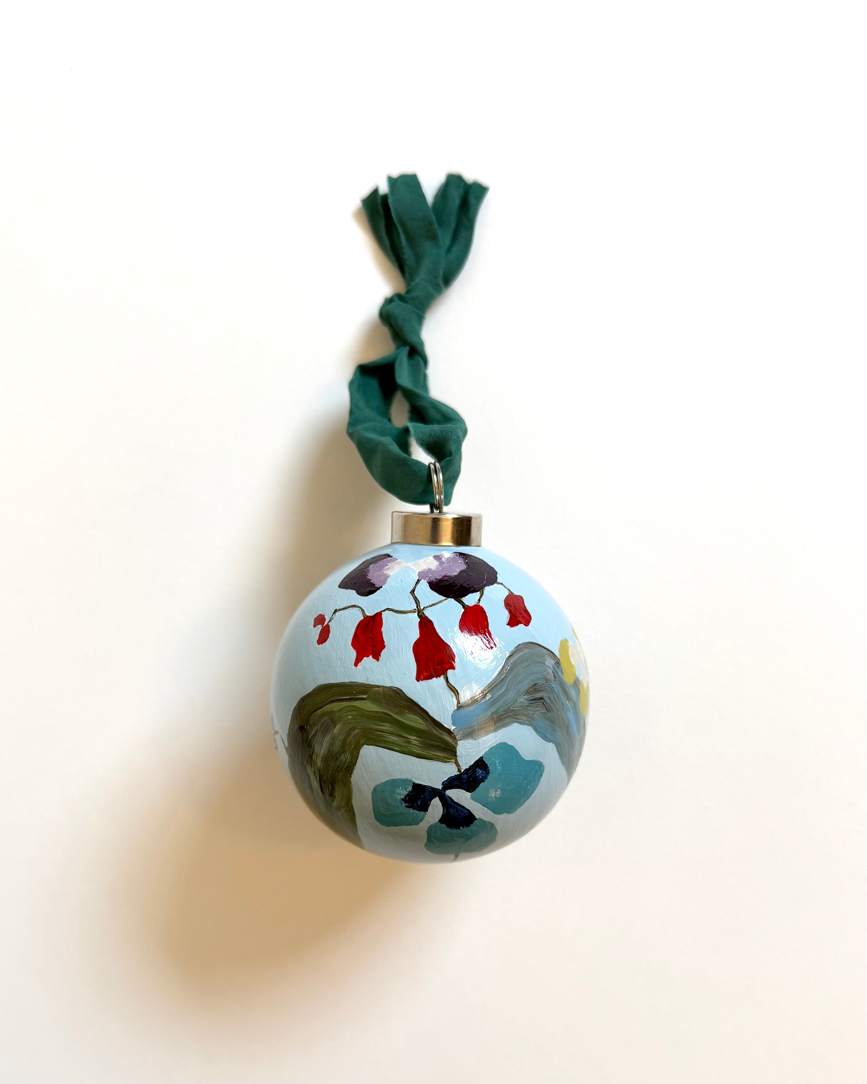 hand painted ceramic ornament with acrylic paint and glossy varnish