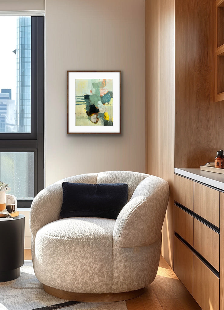 I find ultimate freedom in abstract expressionism and as such, I’m in search of the best way to convey who I am at the moment of creating. It is not to say it is a free-for-all; there is still structure within. I implement the same principles that realist painters employ with the absence of representation: composition, hierarchy, variety, juxtaposition are vital to a successful painting. But I do not limit myself to one medium or the other. I work in oil, acrylics and gouache and depending on what I’m exploring at the time I will choose one or more to express it. I also explore through a combination of paint and collage. It is through all of these various methods and mediums that I am able to share my fullest expression of self and my authenticity. My paintings ultimately are self portraits that are created from both past experiences and also future hopes and dreams. It is my goal to invoke a feeling for the viewer. When it does I have succeede