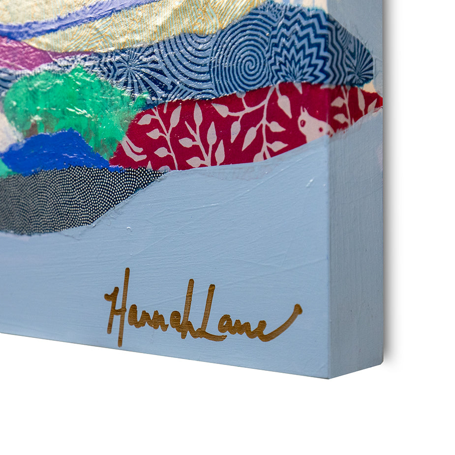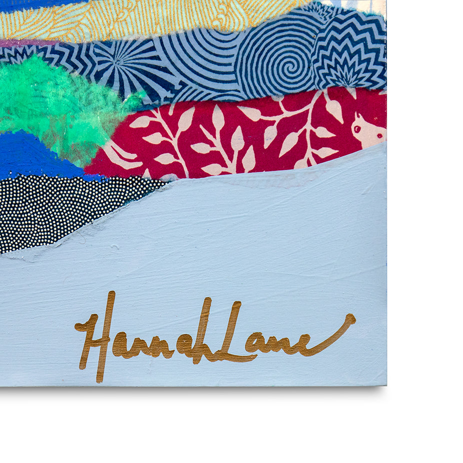 Hannah Lane is a contemporary mixed media artist celebrated for her bold use of color and dynamic, collage-like layering. A Louisiana native and graduate of the Savannah College of Art & Design, Hannah draws deep inspiration from the vibrant landscapes, diverse cultures, and heartfelt sense of family and community found in her southern roots. Her work blends pigmented Japanese papers, expressive line work, and rich washes of acrylic paint to create textured, energetic paintings. Each collection reflects her love for nature, storytelling, and community—an invitation to explore the beauty of her inner imagination. Hannah is represented by some of the top galleries in the Southeast, and her paintings are collected privately and in corporate spaces across the country. She also loves working one-on-one with collectors to create meaningful, custom pieces. After living and painting in Italy and New Orleans, Hannah now calls Nashville home, where she is part of a thriving art community. When she’s not painting in her home studio, you’ll find Hannah hiking with her boys, reading, or cooking up something seasonal and delicious! The crowd series is one of my most iconic collections, inspired by my big, beautiful Louisiana family and the joyful spirit of southern gatherings. I grew up surrounded by cousins, friends, and neighbors—many from families as large and lively as my own—where faith and family were at the heart of everything. Over the past 12 years, this series has evolved with new patterns, papers, and symbols that reflect the changing seasons of life. Each crowd painting is a kind of meditation, a reflection on the deep truth that we’re all connected. Rich with personal symbols and intuitive mark-making, these pieces push the boundaries of mixed media and invite you to see something familiar in a new way. Whether you're drawn to the vibrant energy, the quiet details, or the sense of belonging they evoke, each crowd carries its own unique aura—waiting for the right person to bring it home.