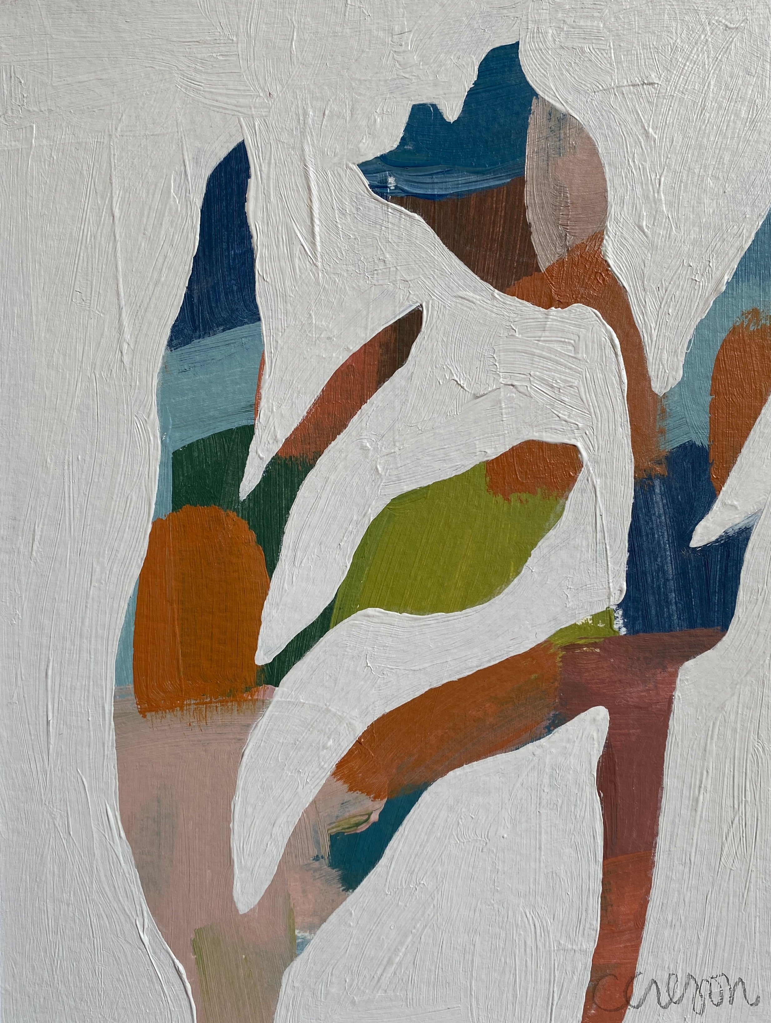 Caroline is a mixed media artist based in Nashville, Tennessee. She works with a variety of mediums and subjects, showcasing her range primarily through landscapes, figures, and collage-like abstracts. Although Caroline has an extensive background in art, including attending Rhodes College on an art scholarship beginning in 2004, she took a hiatus from serious projects to pursue a career in law. Only after the birth of her first child did Caroline find herself painting regularly again - during many a nap and early evenings at home. Following an 11-year career as an attorney, she recently retired from practicing law to exclusively paint and spend more time with her children. Her work can be found in homes, galleries, and shops across the United States. Caroline lives with her husband and two children - the inspiration and drive behind all her works.