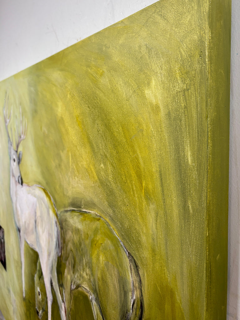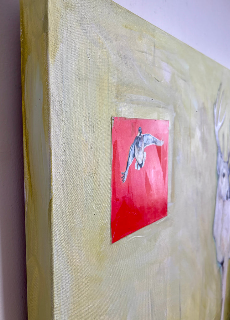 A lifelong artist, I make art because coming up with an idea is what gets me out of bed in the morning and into my studio, mercifully located in my home. So much of what I love in life is at home- my pets inside and wildlife out, nature pouring through the windows, comfortably cluttered rooms full of books and art, the forest surrounding me. My art originates with that early morning idea, a daily walk in the woods, the imagery around me. The deep connection to my surroundings is reflected in the art I make, even using pages of books in my art and the book itself as the canvas with the animals love as the subject. Animal and landscape renderings in mixed media, storytelling dioramas and large works on canvas all have a similar feel of natural wonder.