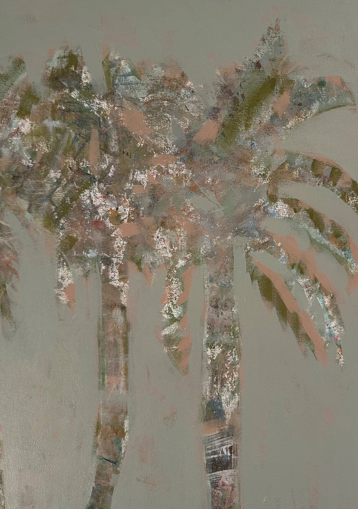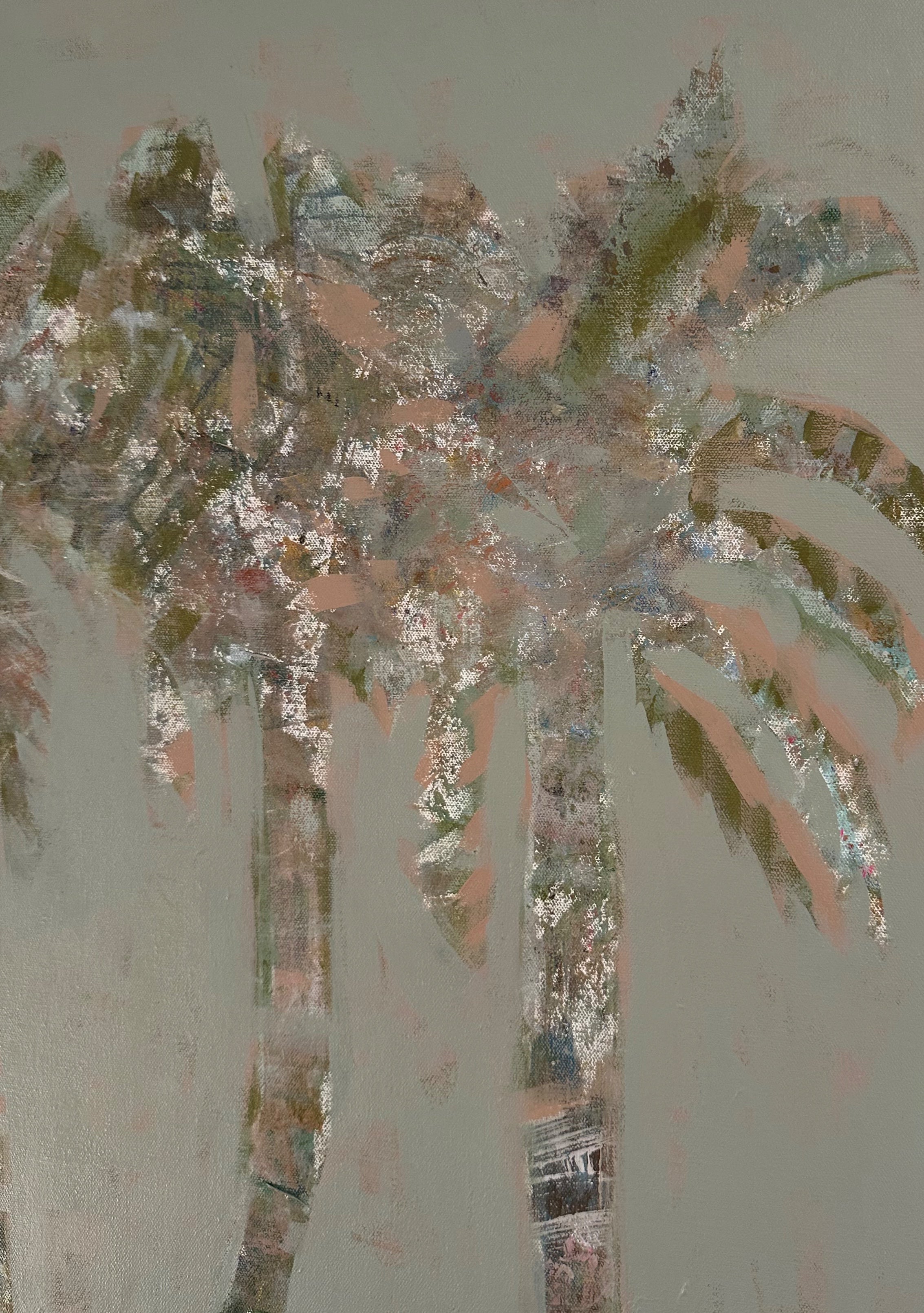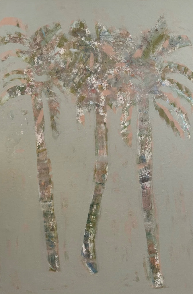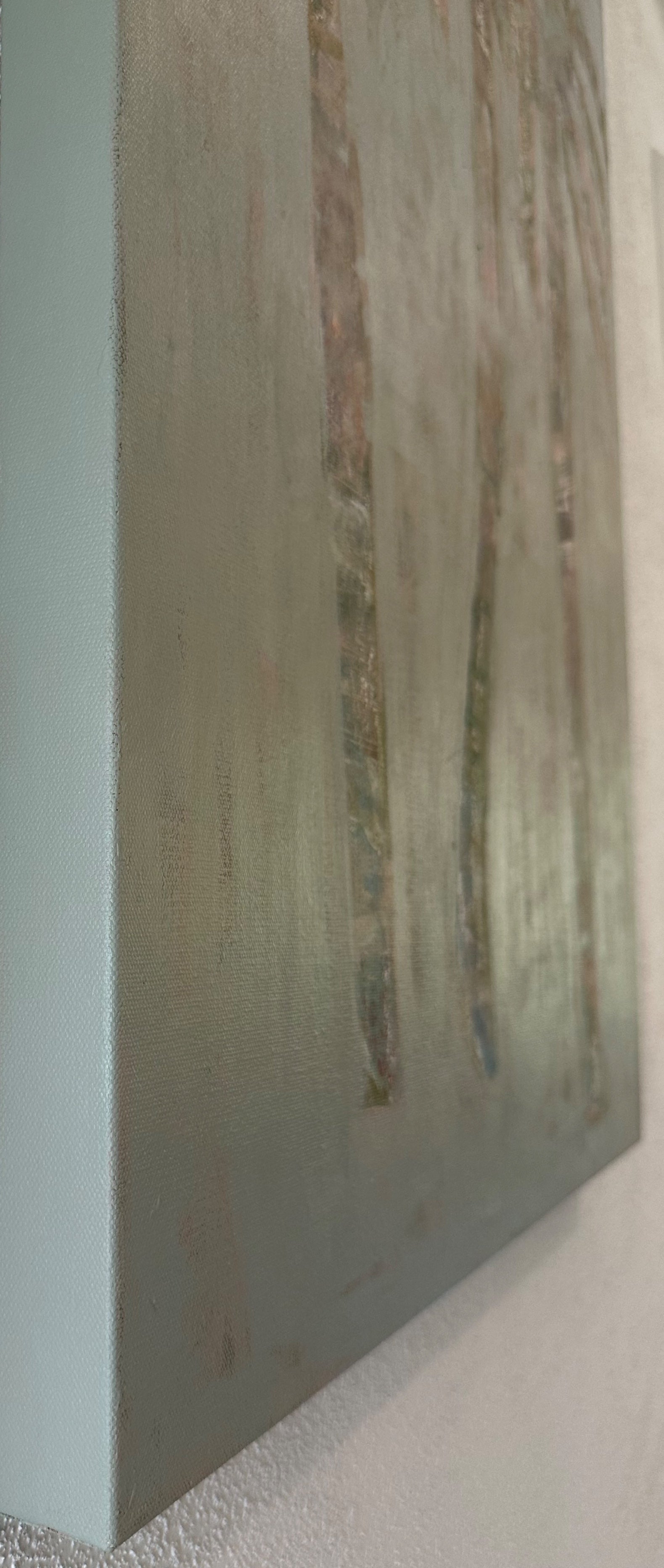 Margaret Meredith is an abstract painter working in acrylic and mixed media. Her work explores emotional atmosphere through layered surfaces, intuitive mark‑making, and a palette that balances moody, muted tones with moments of vivid color. Her recent work builds on botanical themes first explored in 2023, suggesting organic growth and memory rather than literal representation. Alongside this, Meredith has created minimalist, encaustic-medium, and collage‑based works that continue to inform her layered approach. Currently, she is focused on acrylic painting, embracing its fluidity and the freedom to work with water. Pencil marks, printed elements, stencils, and hand‑made tools play an ongoing role in her process, reflecting her love of printmaking and experimental mark‑making. Margaret Meredith lives and works in Columbus, Georgia, with her husband, a woodworker and mushroom farmer, and their two sons.