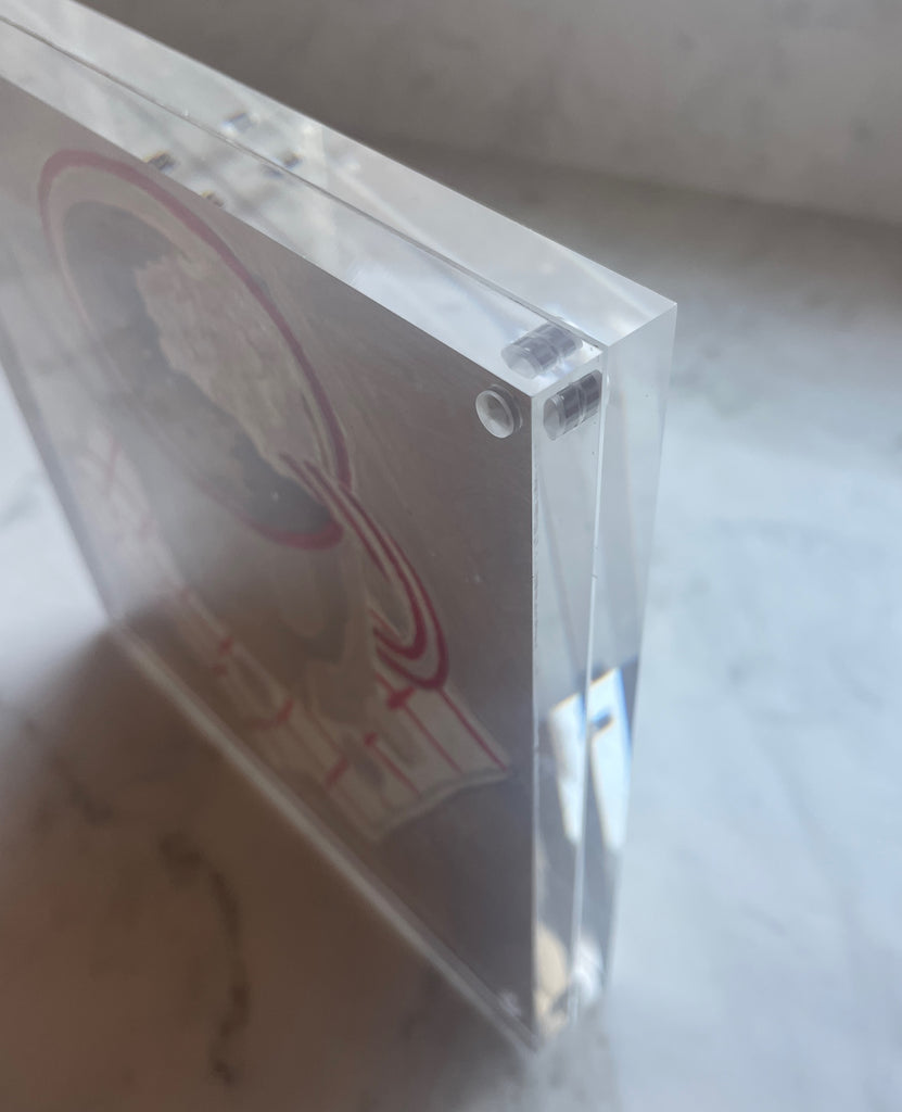 acrylic and colored pencil on heavyweight paper, in acrylic frame