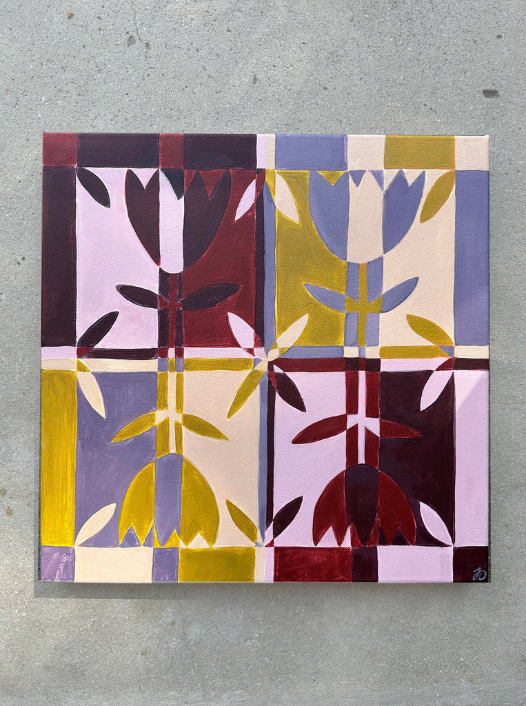 Tess Davies is an artist from Nashville, TN. She graduated cum laude from Sewanee: The University of the South with a B.F.A under the honors program in 2014. Her studio practices include murals, acrylic and oil painting, with a focus on natural textures, layered spaces and dualities. She takes inspiration from escapism and natural and biological textures and forms. "My work explores dualities. It restructures familiar, natural objects into a composition of disparate parts. It combines intricate details found in natural textures, fluidity, and chaos. Stillness and movement, color and contrast, and structure and looseness are all prevalent dualities in my work. The purpose of my practice is to address various inevitabilities in life. I am inspired by escapism and utilize this coping mechanism in my work. I use natural symbolism and feminine tropes, seen in the color palette and various natural forms. Common themes include decay, disease, growth, genetics, femininity, and repetition. I draw on personal issues and anxieties that bring people together, while simultaneously causing divides. I address what separates and connects us, and the cyclical nature of life and human tendencies. The painted, abstract beings represent our tendencies to compartmentalize and reveal personal anxieties. They transition in and out of abstractions and natural forms. This movement between the real and the imagined is representational of escapism. Creating these patterns, and repeating them intricately and deliberately, directly correlates to our repeated tendencies. It is also representative of the constant division of cells and growth found in the processes of decay and rebirth. By using natural metaphors, the purpose of this work is to beautify the inevitable."