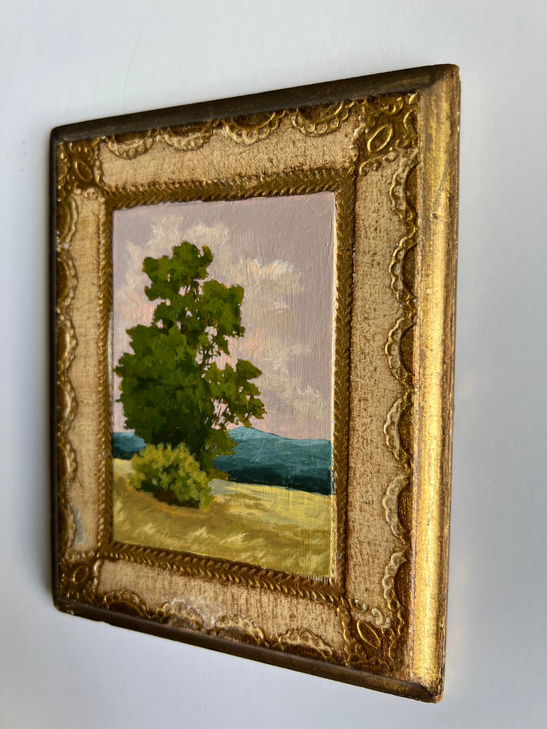 Jennifer was born in Jackson MS and moved to Nashville as a child. She enjoyed art as a child and painted with oils a bit as a teen, but ultimately went to MTSU to earn a degree in nutrition. Jennifer didn’t truly begin painting again until her children were in school full time, and started simply by painting pieces she wanted to hang in her own home. Discovering a love for vintage and antique frames (not to mention looking for these frames both in-person and online), she began pairing them with her favorite paintings. She paints primarily in acrylics on handmade paper. “I love the juxtaposition of a vintage/antique frame with the freshness of a modern landscape on textured handmade paper; the marriage of that tradition and history combined with the fresh clean colors in my pieces brings me joy.” She finds inspiration in clouds and trees and the hunt for the perfect vintage frame. Jennifer lives in Nashville with her husband and two boys.