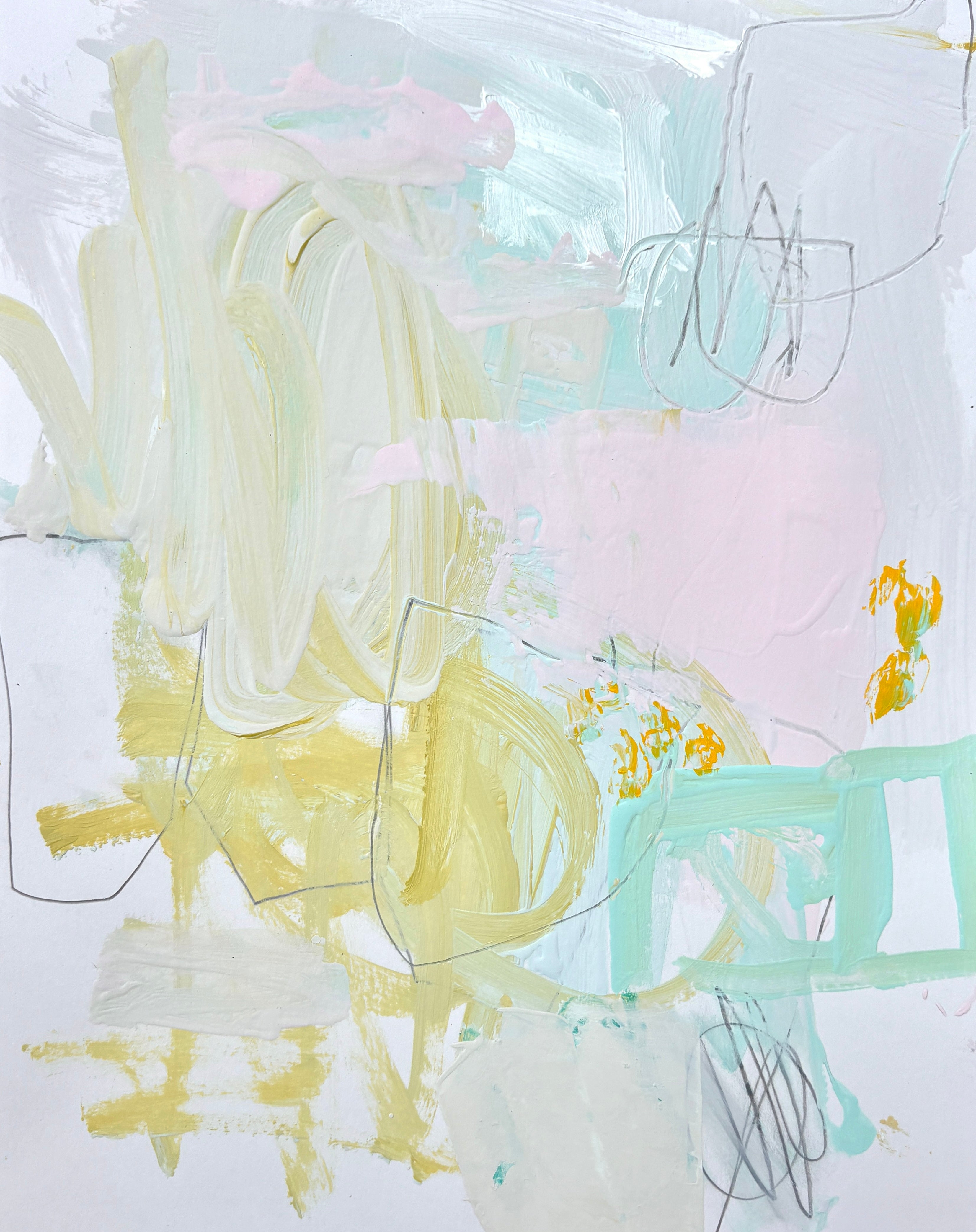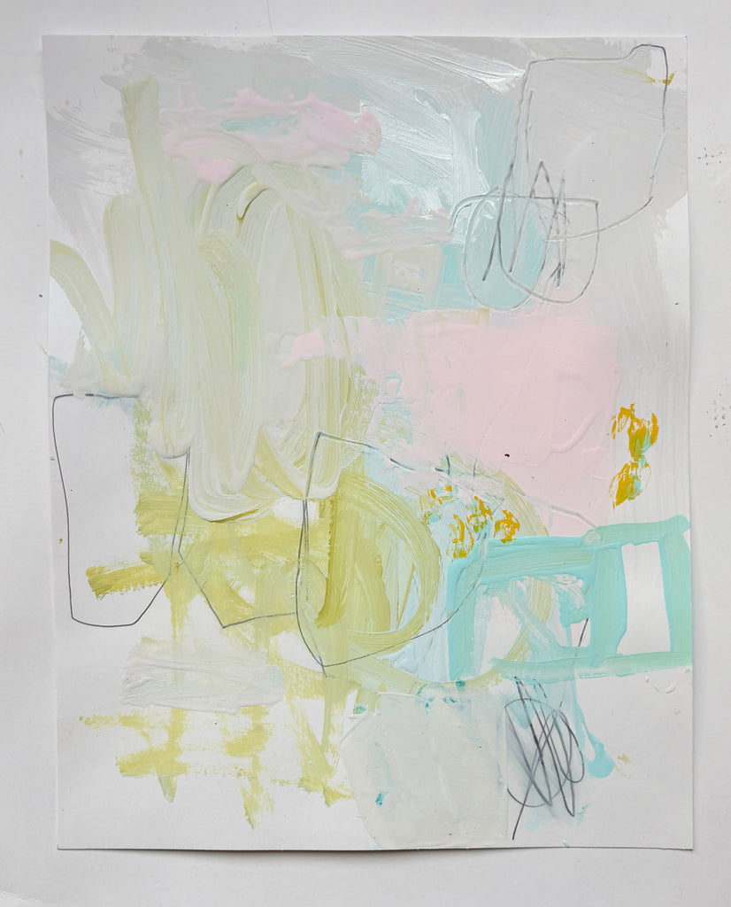 Sarah Trundle is a Charlottesville, Va. painter working primarily in abstraction. Decisive mark-marking, bold, geometric shapes, and a simplicity of form, line, and color, are the hallmarks of Sarah's paintings. She sees every painting as a constantly evolving and shifting process, often starting a piece without any fixed vision of an end product. Her approach is one of constantly obscuring and re-defining, of ongoing layering, scraping, covering, wiping, scratching, and generally moving paint and materials around to ultimately achieve the final balance of shape and color that gives her that "aha" moment.
