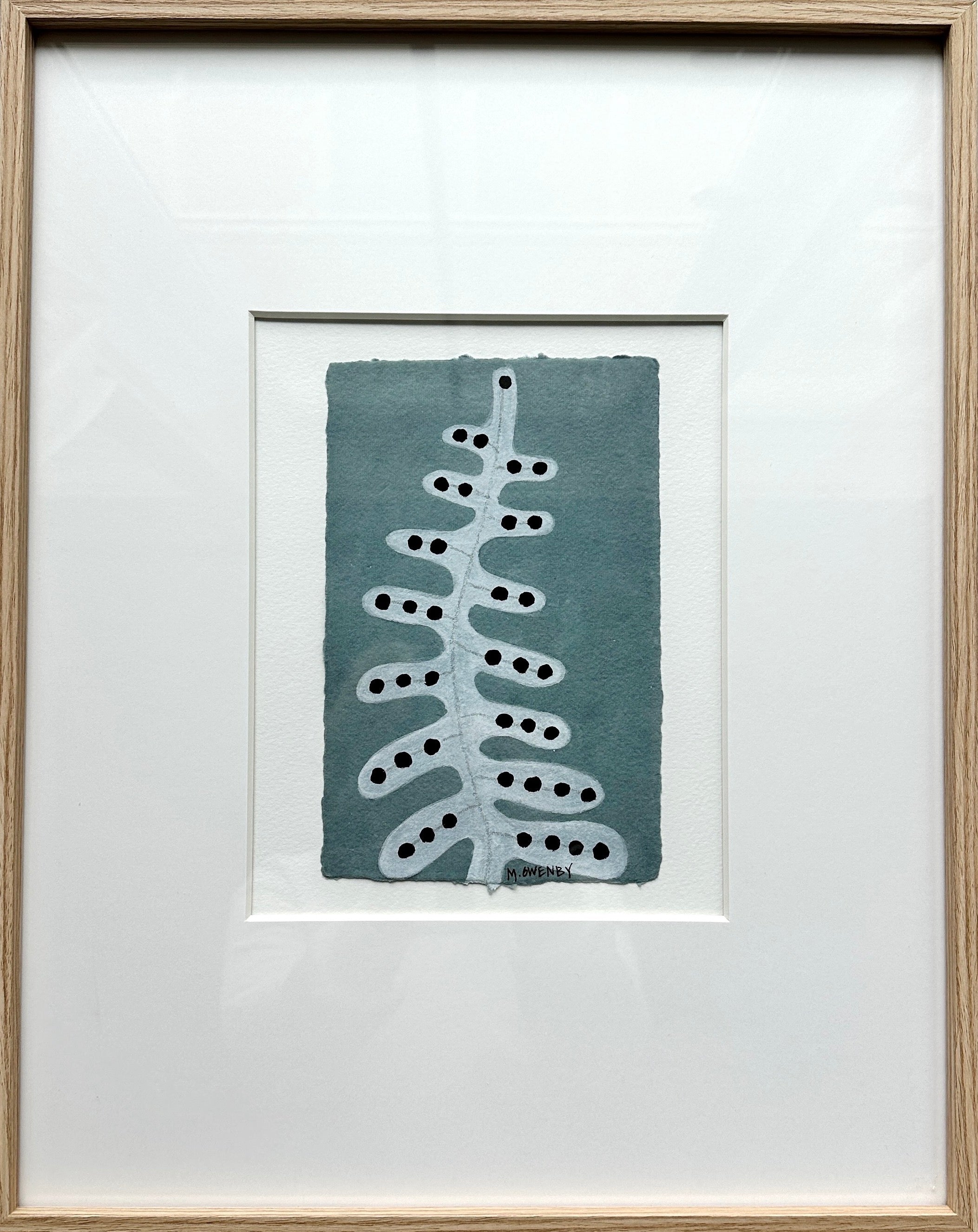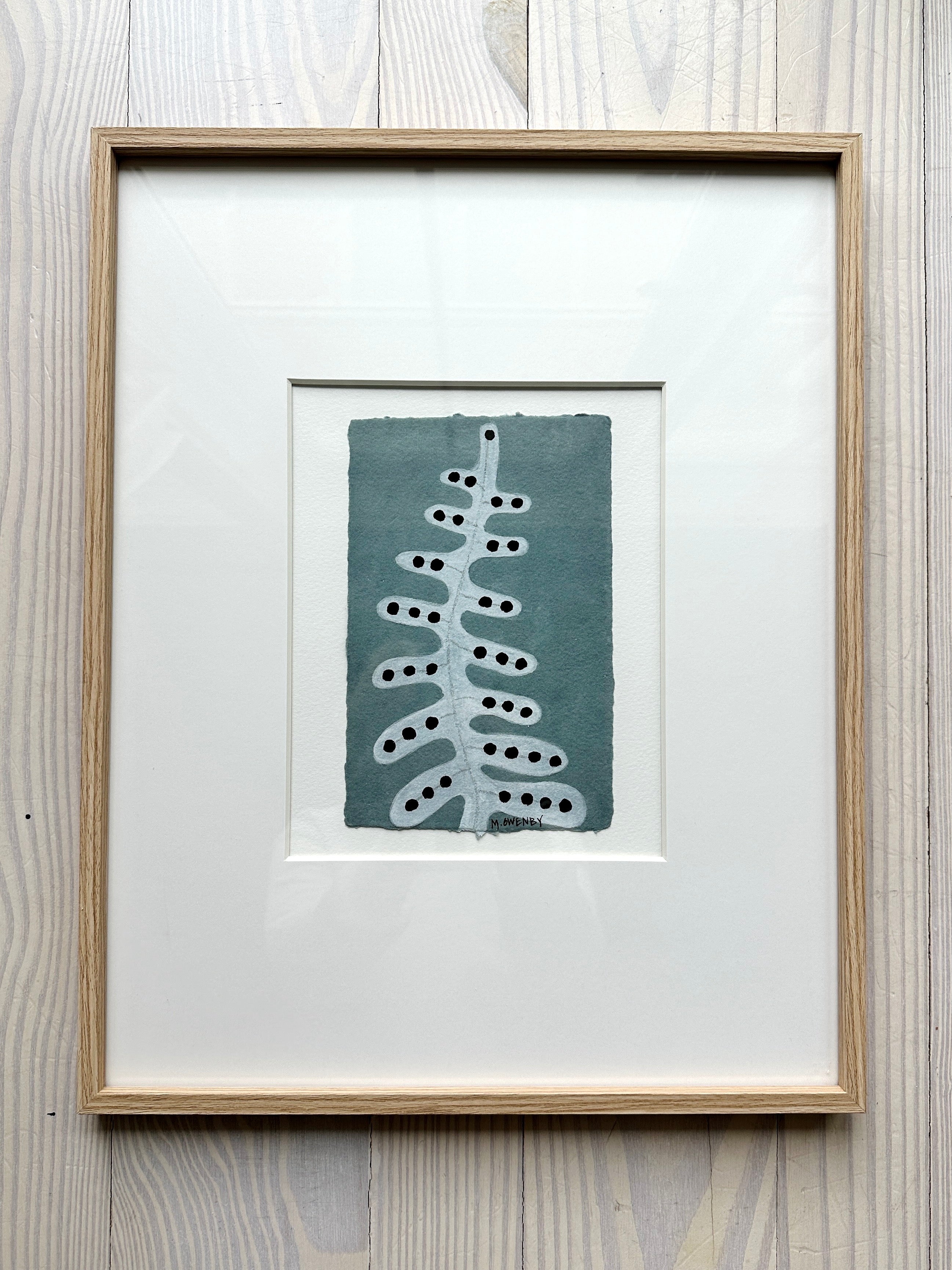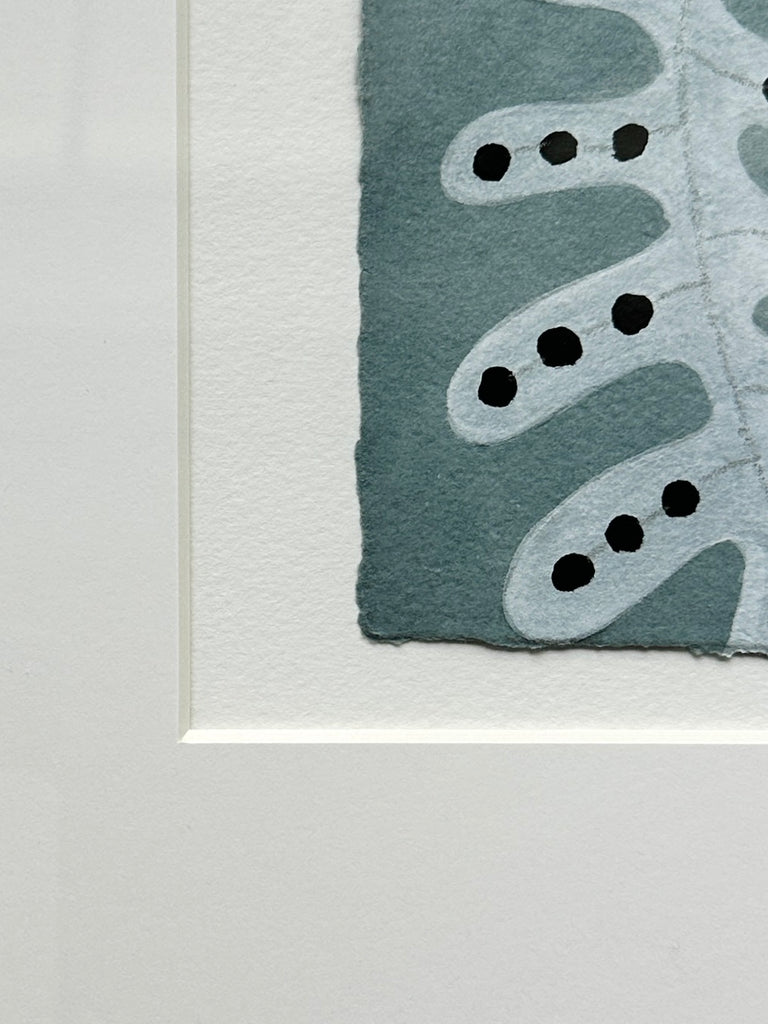 gouache, acrylic and wax pastel on paper, in white mat and natural wood frame