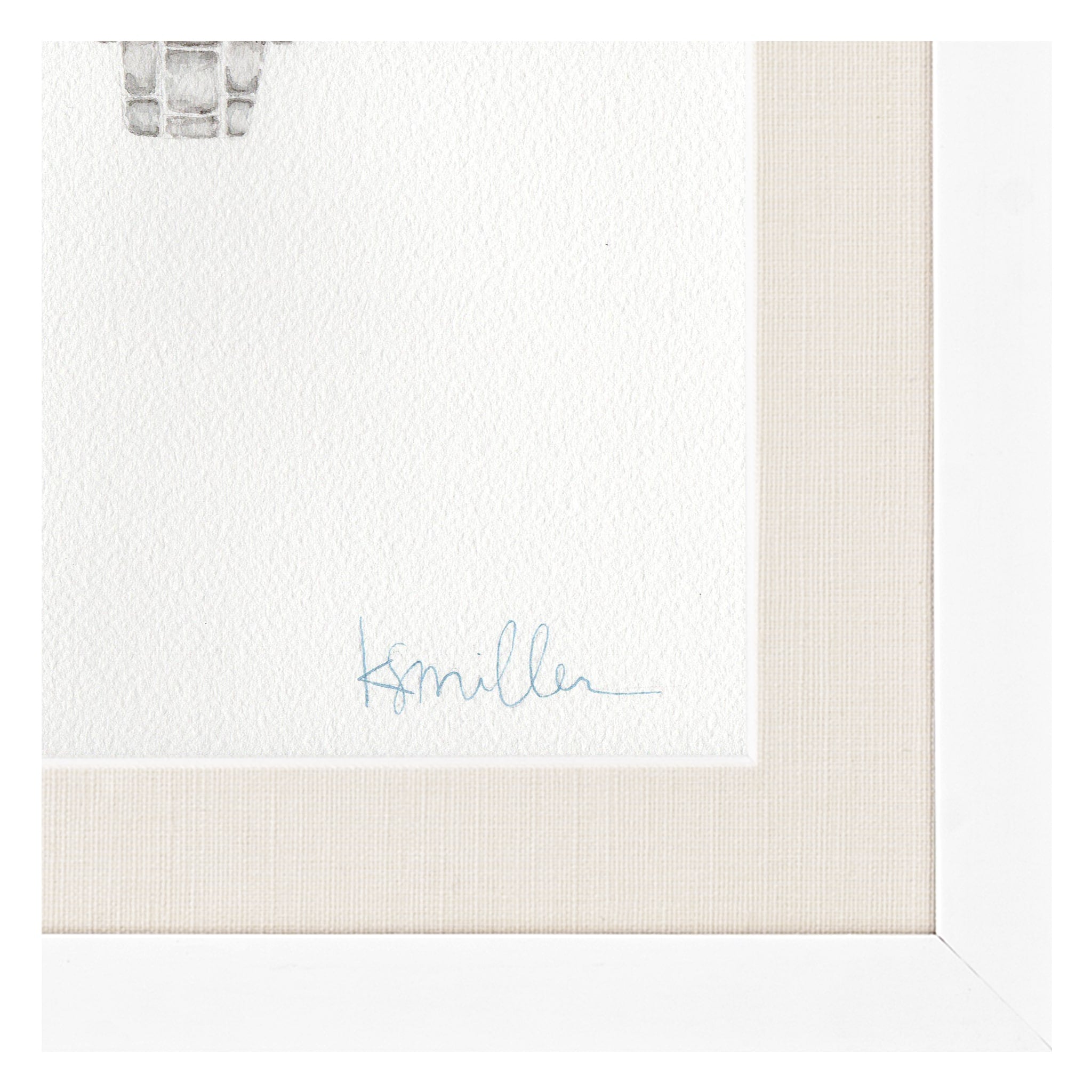 watercolor on paper, framed in white frame