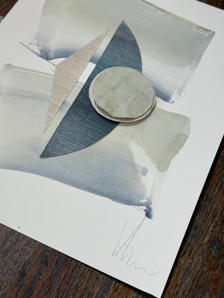 mixed media collage, acrylic, handmade paper and grasscloth