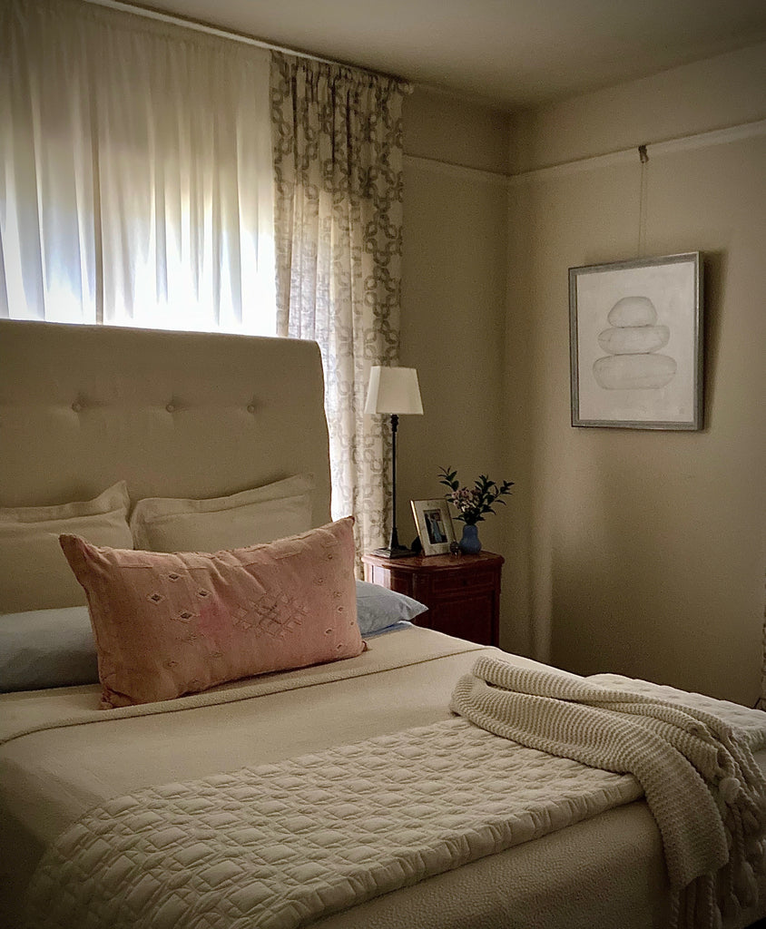 acrylic and mixed media on gallery wrapped canvas, framed in silver frame