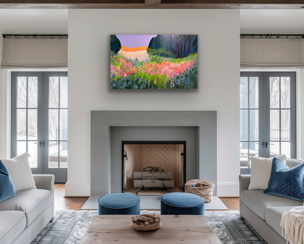 Suzanne absolutely loves color and patterns, and it shows in her work. She often uses an organic process of dripping and layering paint to achieve the effect she’s looking for. Her inspiration comes from the landscapes and people around her. She considers her work as an ongoing exploration, endeavoring to portray the natural and cultural world and those who live in it as strangely beautiful -- yet enormously fragile. Suzanne recently moved back to Virginia from Champaign, Illinois where she met her husband and raised her two wonderful children. Her academic degrees include a landscape architecture degree with an art minor from Virginia Tech and a masters of landscape architecture from University of Illinois. She’s always loved to draw and paint, and when she decided to drop organic chemistry for drawing, and forestry for landscape architecture she knew the creative path was calling her home! She’s painted much of her life, and began exhibiting professionally in the Midwest over the past fifteen years. Now she looks forward to making connections on the East Coast. She happily lives outside of Charlottesville with her husband, her dog and cat, and her mom.