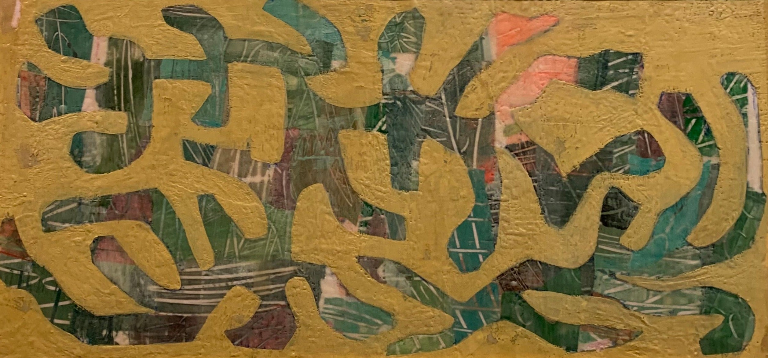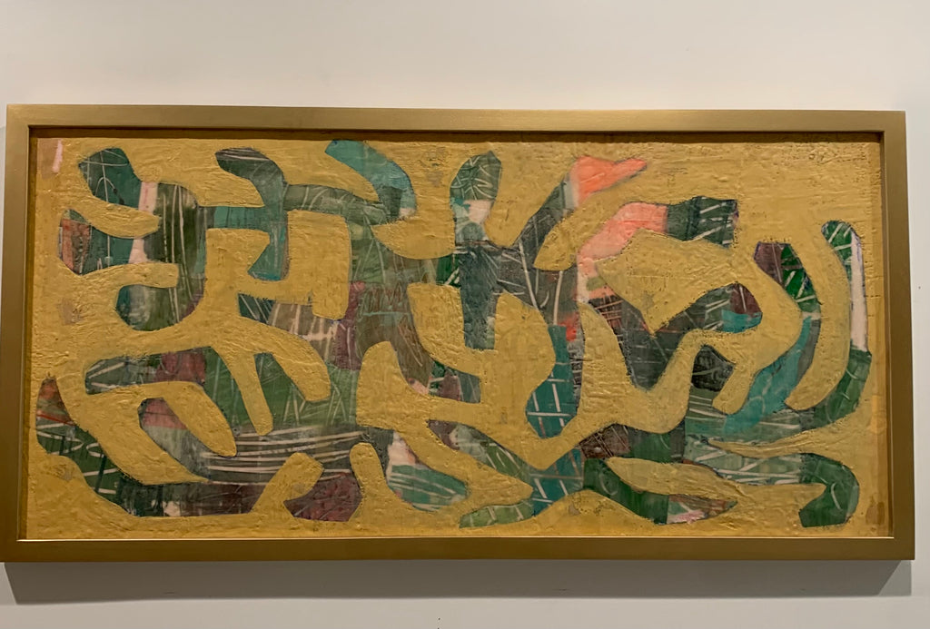 mixed media and encaustic on wood panel, gold frame