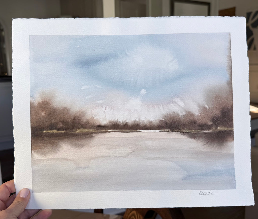 My art is heavily inspired by nature. Each creation takes on its own life, much like nature does when it unfolds. Many of my pieces greet you with a soft, serene atmosphere evoking a peaceful emotion, while others pull you in with the bold colors, telling their own story. I am drawn to the horizon line, the space where land or water meet the sky, a quiet pause at the end of the day as the sun sets, a deep exhale, or a place to root yourself to the earth. It reminds me of how important it is to stay grounded in the world we live in today.​ I received my BFA in Illustration from Washington University in St. Louis. I taught elementary art for many years and have been a professional artist for the past 5 years. In addition to my studio practice, I lead watercolor workshops and retreats. This work allows me to connect with women, teaching them how to use the medium as a tool to ease anxiety. My painting practice is what grounds me daily. I love sharing with others how to set intentions and being mindful with their own creativity.