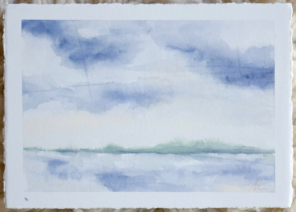 watercolor on deckled edge watercolor paper mounted to birch wood panel