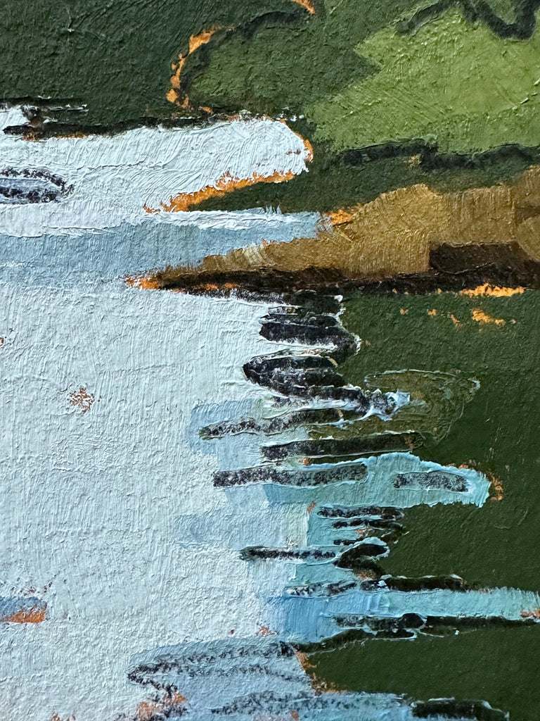 Pamela’s intention as a painter is to speak to the elegance of place and object; to use paint as a means to capture an image and then to reduce the noisy elements in landscape, botanical or interior subjects, by breaking down busy images into an economy of shape and hue. “I love a quiet place. I love to have the brain space to allow my mind and my eyes to soak in the images of my world. In the same manner, the image I want to paint must also speak to my need for simplicity and peace. Our world is a busy, loud and cluttered place. I can paint those elements out, leaving only lovely positive and negative shapes, made with colors that love to be together...” Painter and avid gardener who is fascinated with color, inspired by music, good reads and lessons to learn, Pamela works from her studio with windows that let in the woods of Northeast Georgia, where she lives with her husband Van, dog Tuck and friendly wildlife.