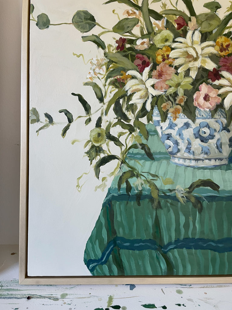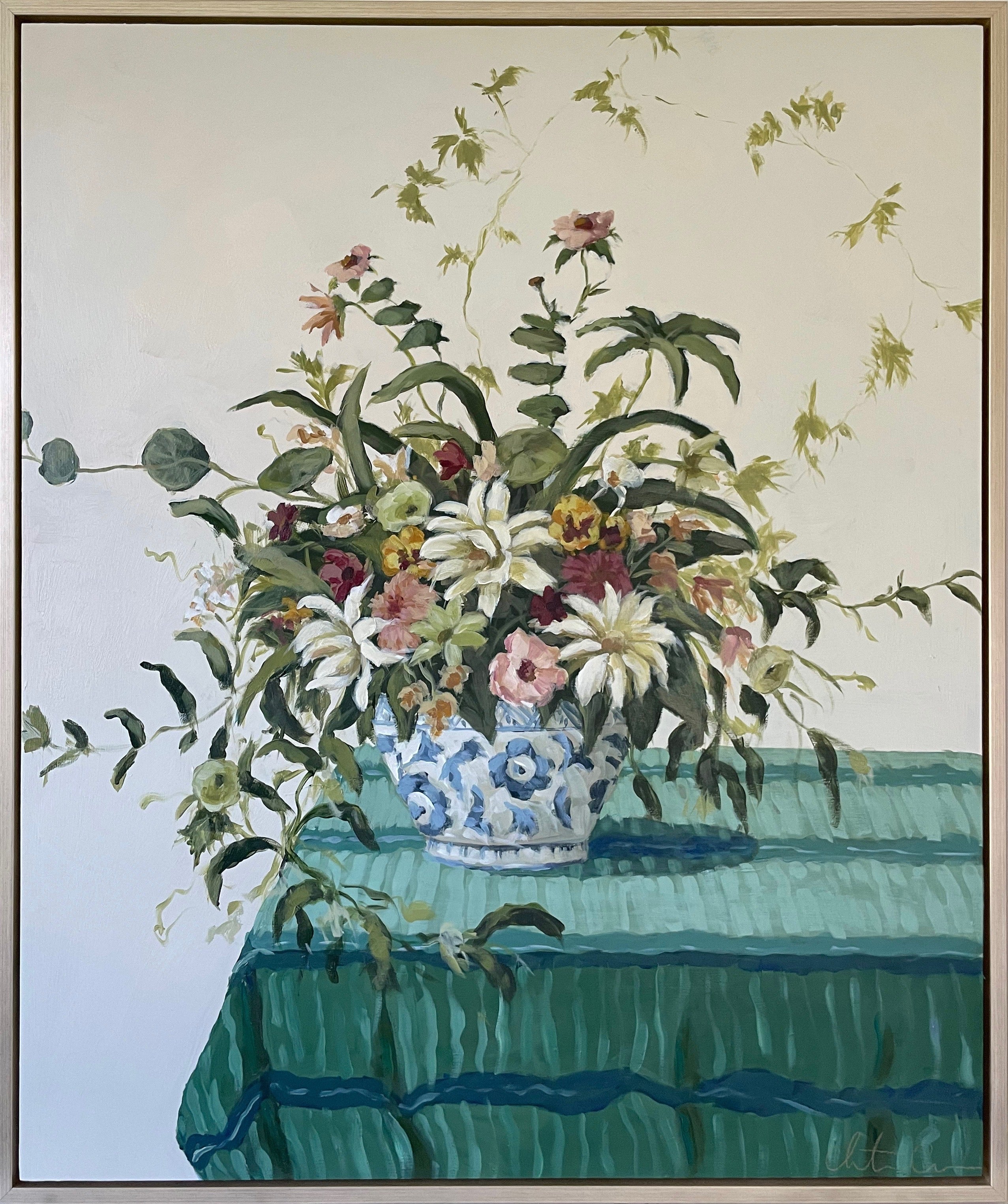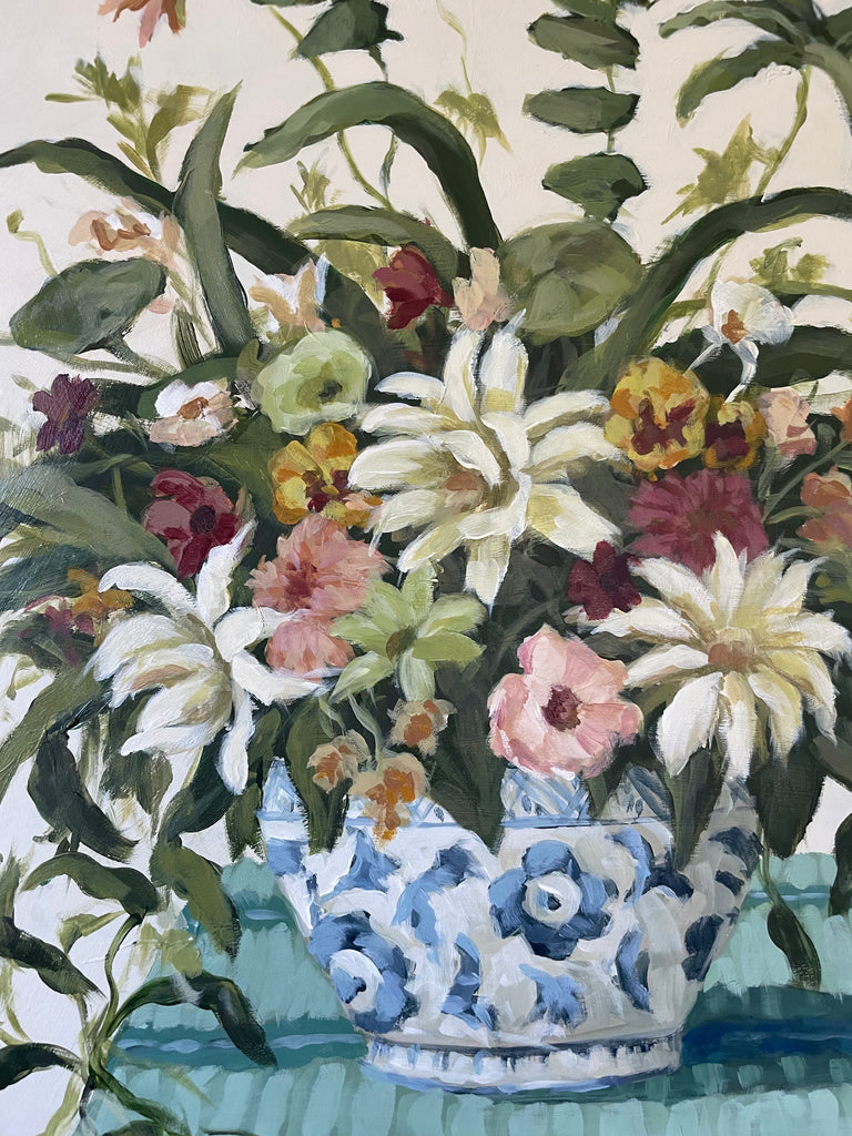 Christine hopes to create artwork that strikes the balance of fun and timeless, in an effortless manner. Composition and color harmony are a distinctive part of her work. Her palettes and subject matter are heavily influenced by her upbringing along the east coast of Florida. She hopes to bring everyday scenes to life through a new perspective and unexpected moments of color. Christine paints entirely from the three primaries (red, yellow + blue) and white. This has helped her gain a strong understanding of color theory.