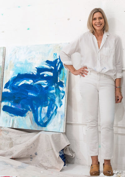 Elizabeth Bernheisel’s art explores the boundless potential of color, shape, and line, which are deeply intertwined with her life experiences. Inspired by her grandfather, an artist, and successful entrepreneur, she pursued creative businesses for many years before discovering her love of abstract painting. Primarily self-taught, she honed her style by studying with master artists and experimenting with various media and styles. Her vibrant and expressive work mirrors her passion for beautiful interiors, lush gardens, and the decorative arts. Born and raised in the DC Metro area, she moved to sunny South Florida in 2020, embracing a full-time career as an abstract painter. She quickly became active in the local art scene, showcasing her work at local galleries and Miami Art Week. Her work has garnered attention, being featured in prestigious publications such as Modern Luxury, Luxe, and Palm Beach Illustrated, as well as the Serena & Lily website and design shops Elizabeth continues to create captivating artworks that inspire and delight in her bright, spacious studio in the Warehouse District of West Palm Beach, Florida.