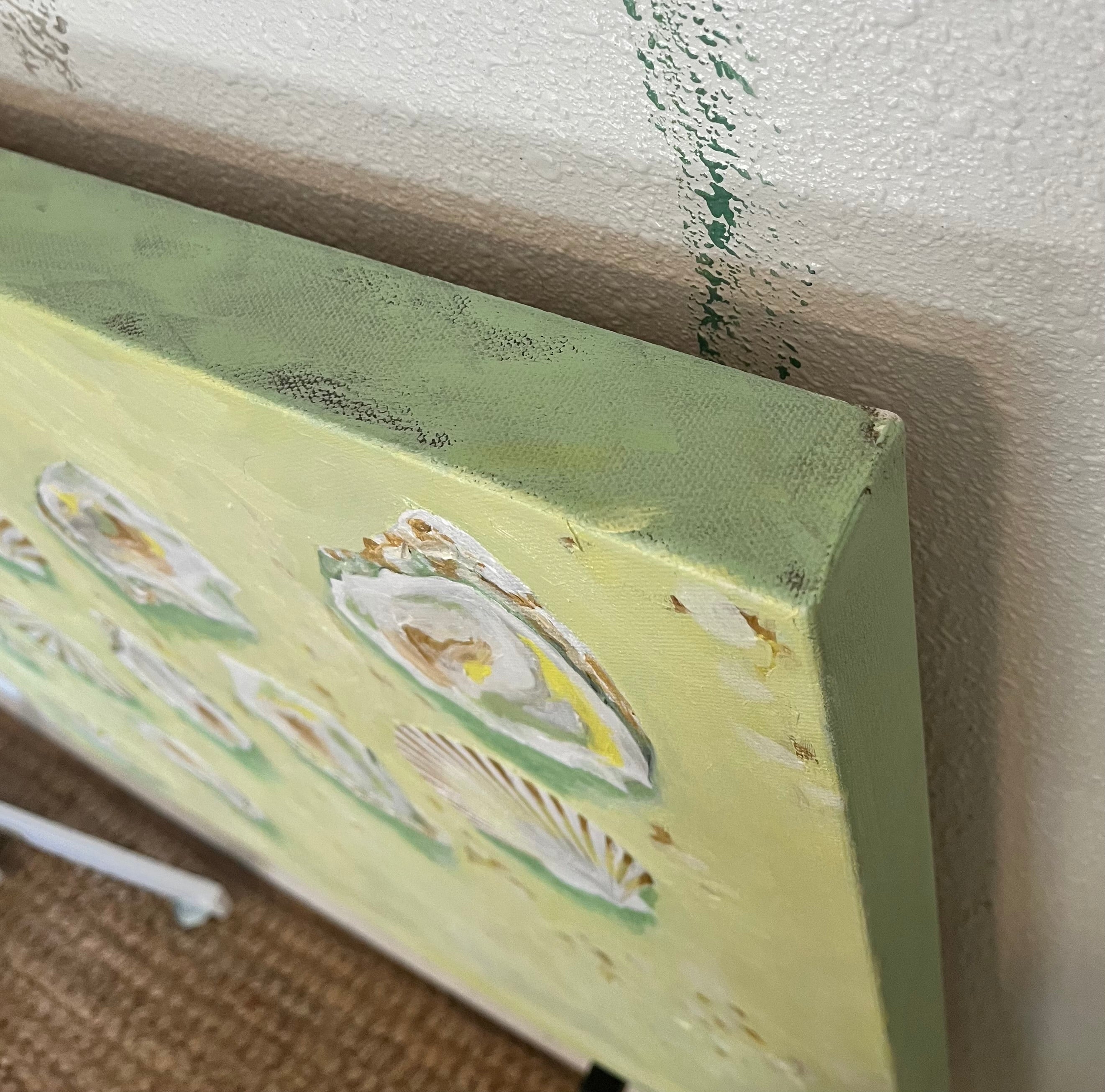 Pensacola based artist, Kelly Whibbs, finds her inspiration right at home on the Gulf Coast. The vibrant beauty and serene energy of her coastal town is infused into her work through layers of color and texture. Most of Kelly’s works are acrylic on canvas and feature organic forms one might find near the sea. She is probably most well known for her paintings of palms, which are featured in many of her collectors’ homes and businesses. Her most recent works are influenced by her seashell collection from a lifetime of beachcombing on Pensacola Beach and Maryland’s Eastern Shore. Kelly enjoys experimenting with scale and light, inviting the viewer to step forward and take a closer look. When she is not painting, Kelly can be found spending time with her husband, their three little boys, and their dog, Chessy. They are on the water whenever possible- whether boating, catching crabs, fishing, or just having themselves a beach day.