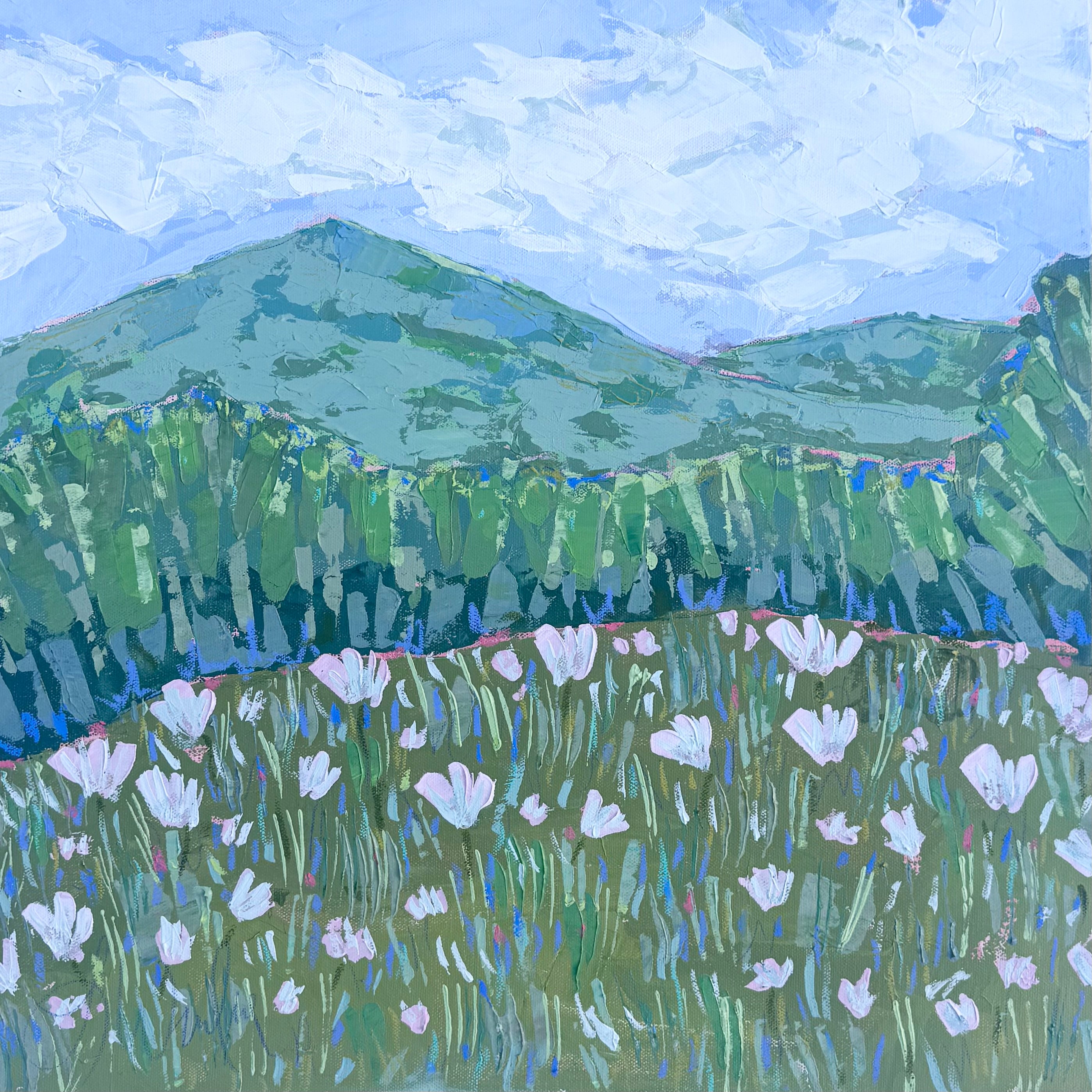 Lindsey’s paintings are an escape and journey - a time to relish the process of creativity: the brush strokes, the layers, the juxtaposition of colors. She works primarily with acrylic paints for their intensity of color and the ability to layer and create textures with various acrylic mediums and gels. A native of Lynchburg, Virginia, Lindsey’s landscapes generally focus on special places that she has known all her life, including fields at the foot of the Blue Ridge Mountains and the pristine beauty of the Cowpasture River. Working from onsite sketches and photographs, she mixes observations with her own personal memories and feelings of how she perceives a place. In addition to being an artist, Lindsey is a full-time art educator, wife, and mother of two young children.