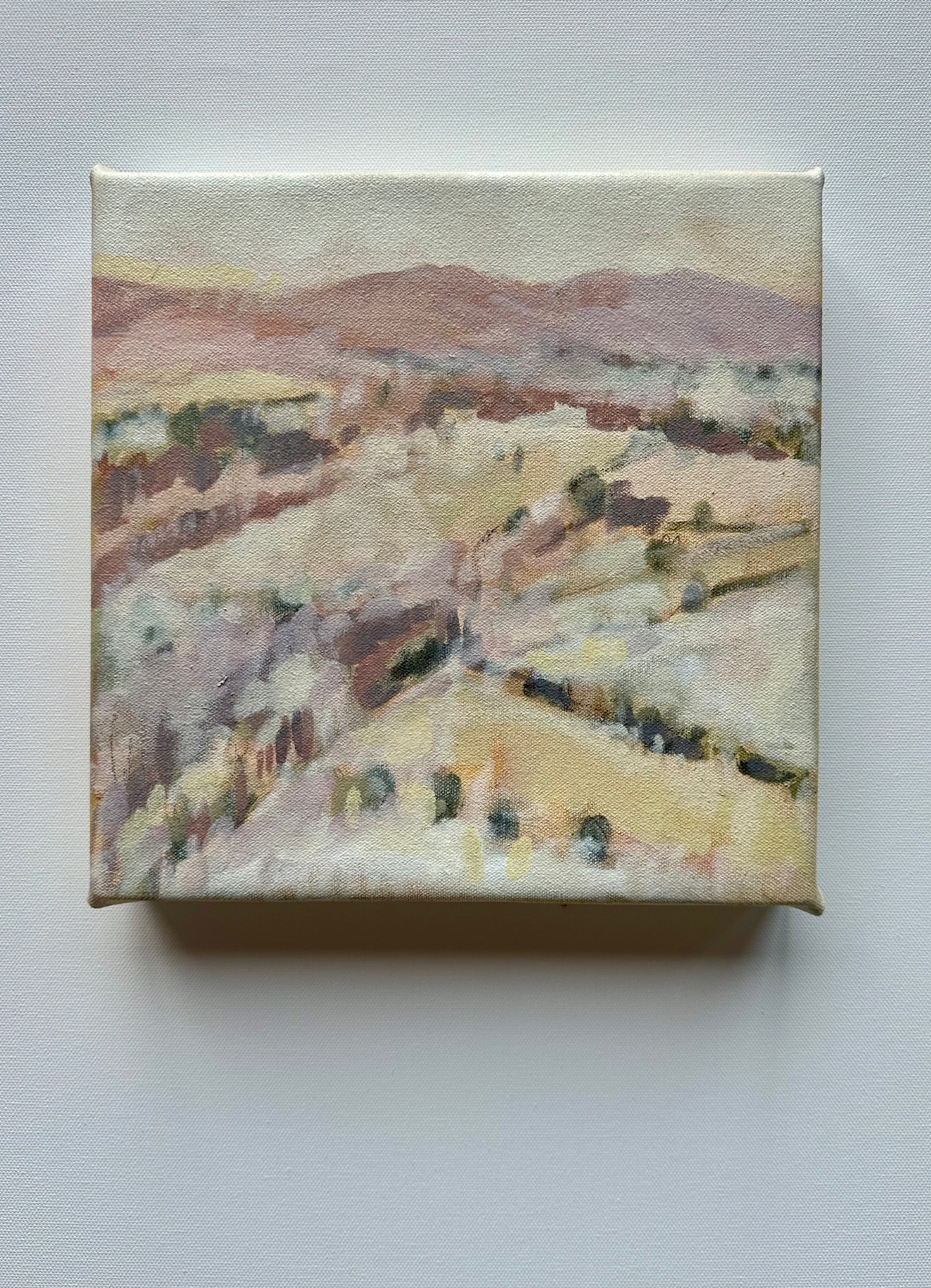 Christen Yates renders the emotional experience of the landscape through the use of layered oil paints creating compositions that border representation and abstraction. Incorporating pigments that are non-toxic and occasionally, locally foraged, lends a congruence to honoring the land she celebrates. Raised on the North Shore of Boston, Christen attended the University of Virginia and later completed graduate studies in theology, art & sustainable development in Vancouver, BC. Since moving back to Virginia in 2014, she has exhibited locally and in various venues from Cape Ann, MA to the San Francisco Bay area. She's held artist residencies on Vancouver Island and in the highlands of Texas. Her work has been acquired by the University of Virginia and is held in numerous private collections. Christen works out of her home studio on a small farm at the foot of the Blue Ridge mountains.