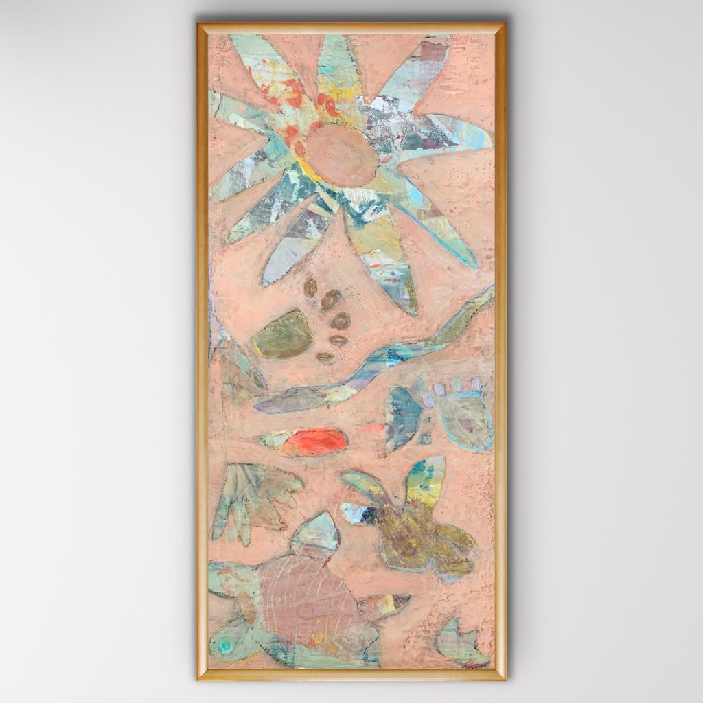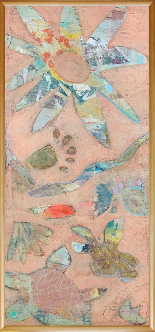 Margaret Meredith is an abstract painter working in acrylic and mixed media. Her work explores emotional atmosphere through layered surfaces, intuitive mark‑making, and a palette that balances moody, muted tones with moments of vivid color. Her recent work builds on botanical themes first explored in 2023, suggesting organic growth and memory rather than literal representation. Alongside this, Meredith has created minimalist, encaustic-medium, and collage‑based works that continue to inform her layered approach. Currently, she is focused on acrylic painting, embracing its fluidity and the freedom to work with water. Pencil marks, printed elements, stencils, and hand‑made tools play an ongoing role in her process, reflecting her love of printmaking and experimental mark‑making. Margaret Meredith lives and works in Columbus, Georgia, with her husband, a woodworker and mushroom farmer, and their two sons.